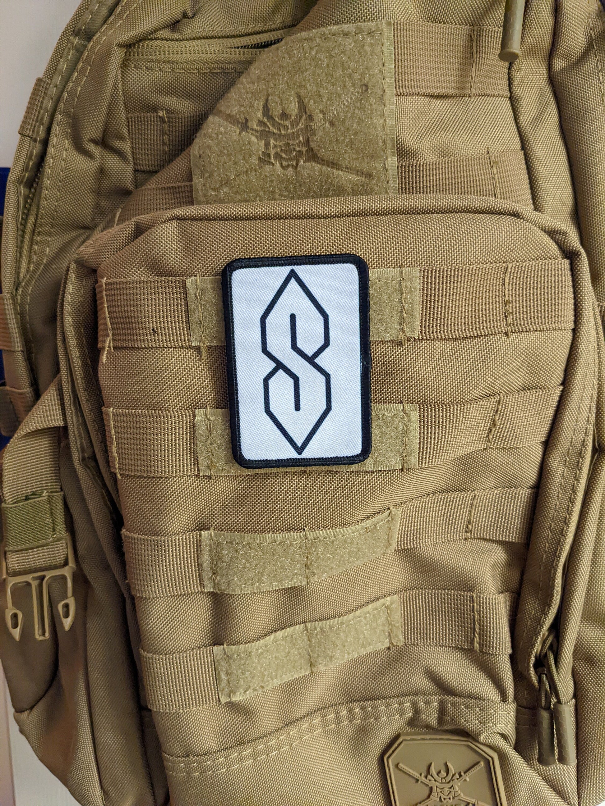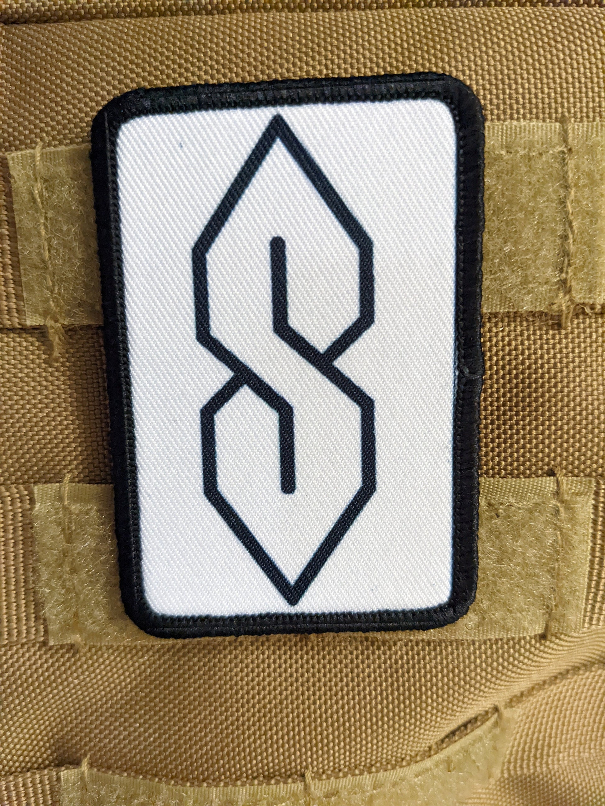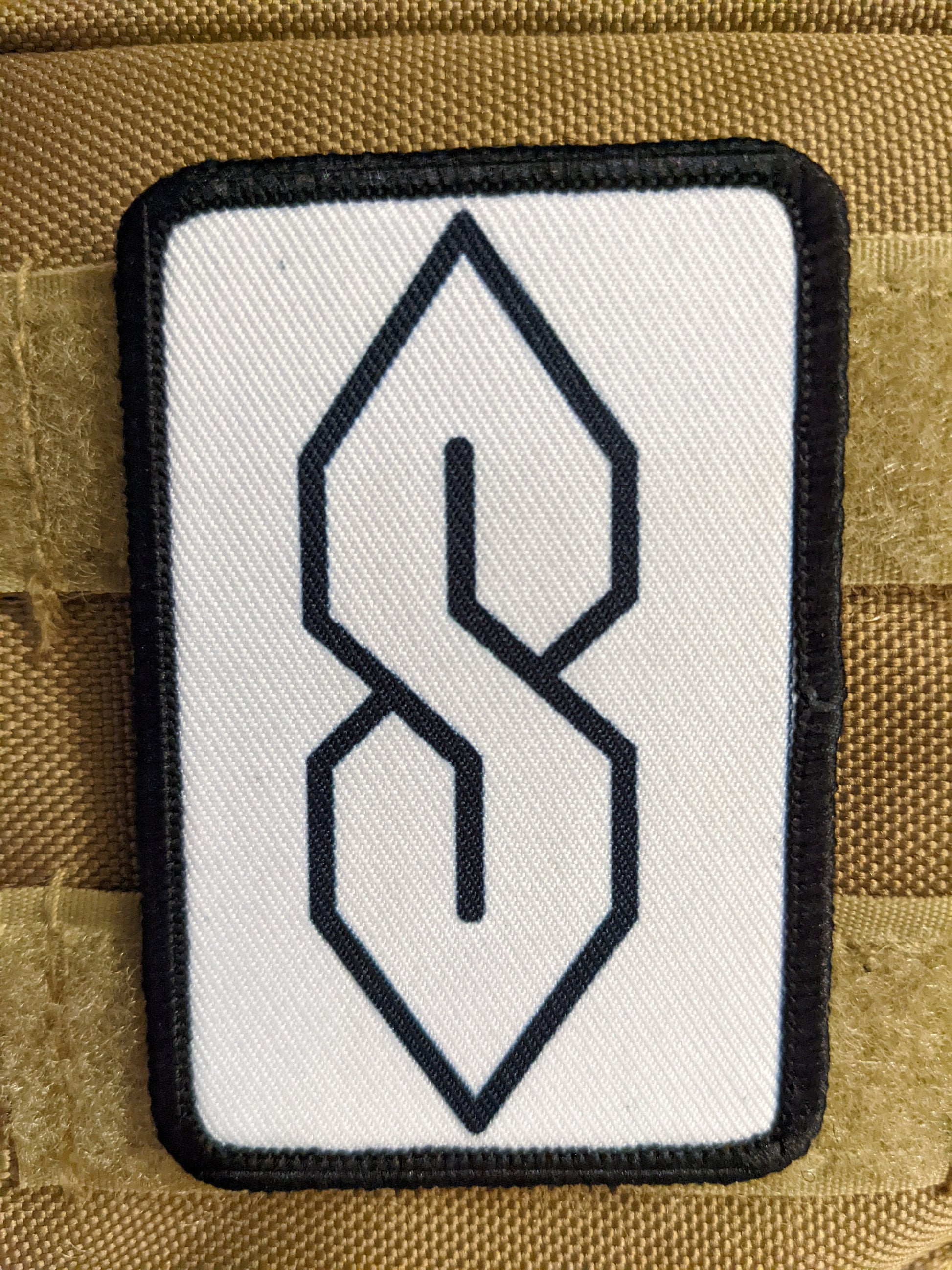 90s "S" shape drawing ancient meme knowledge white 2"x3" morale patch with hook and loop backing