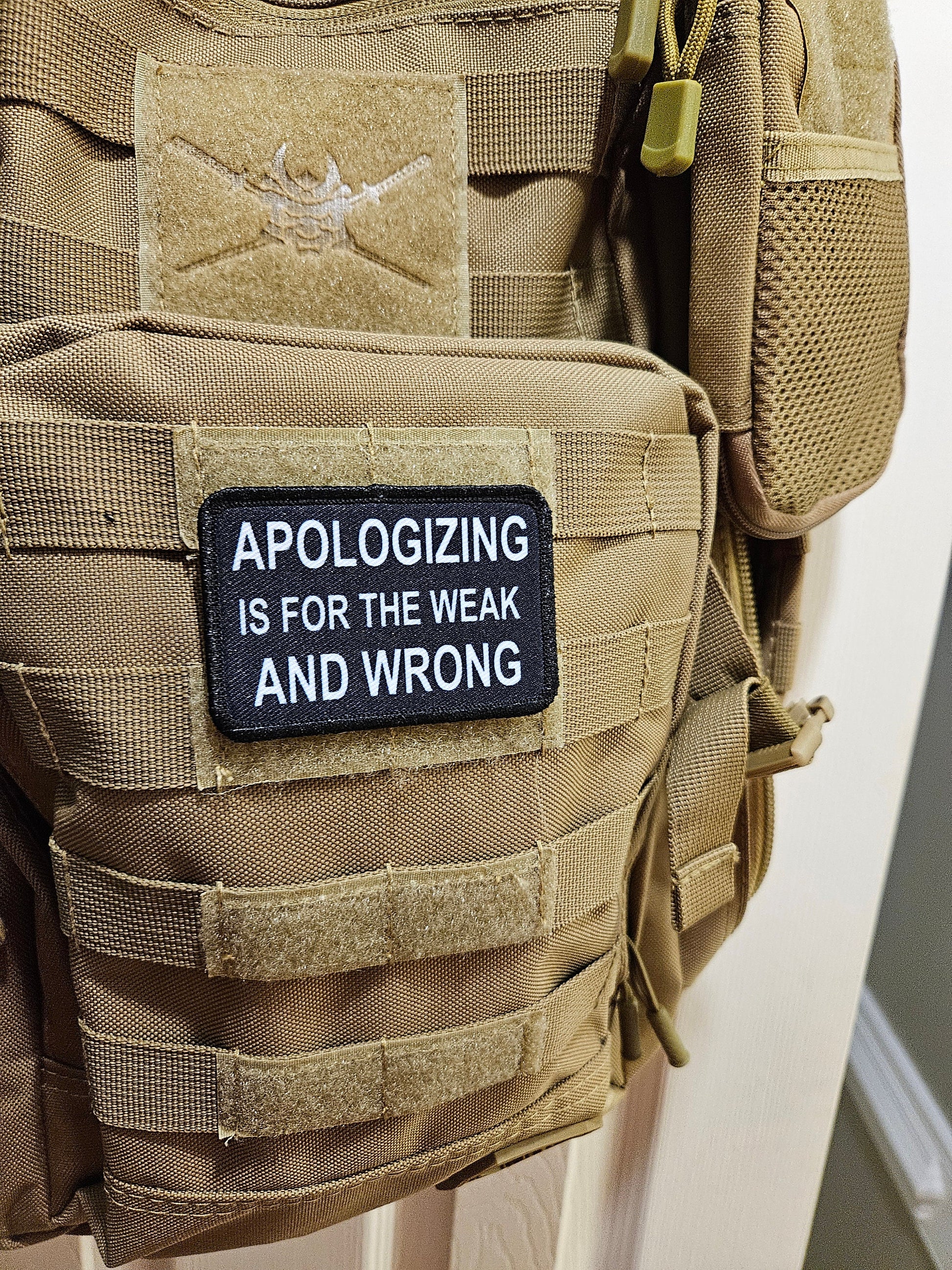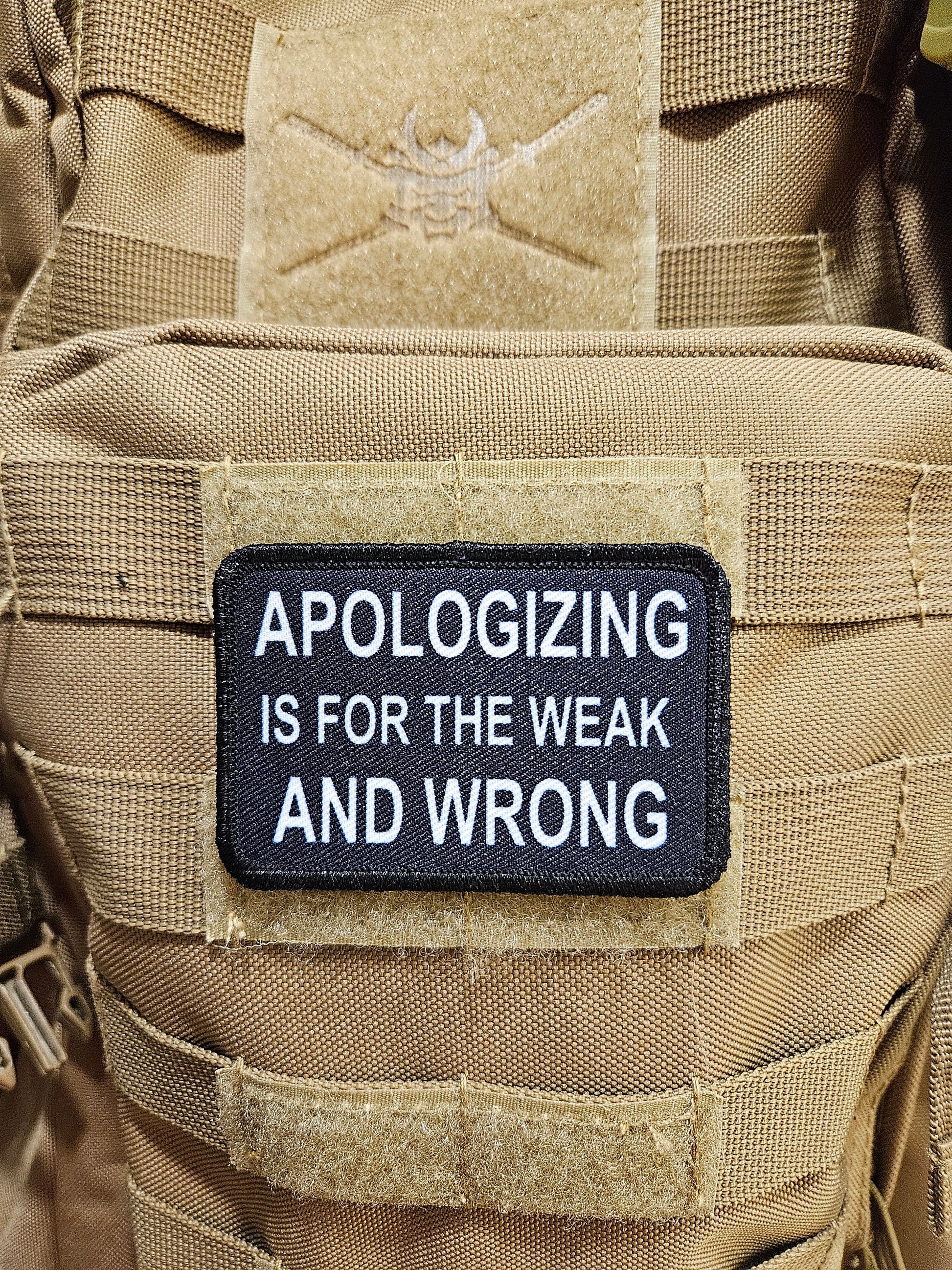 Apologizing is for the weak and wrong meme 2"x3" removable morale patch with hook and loop backing