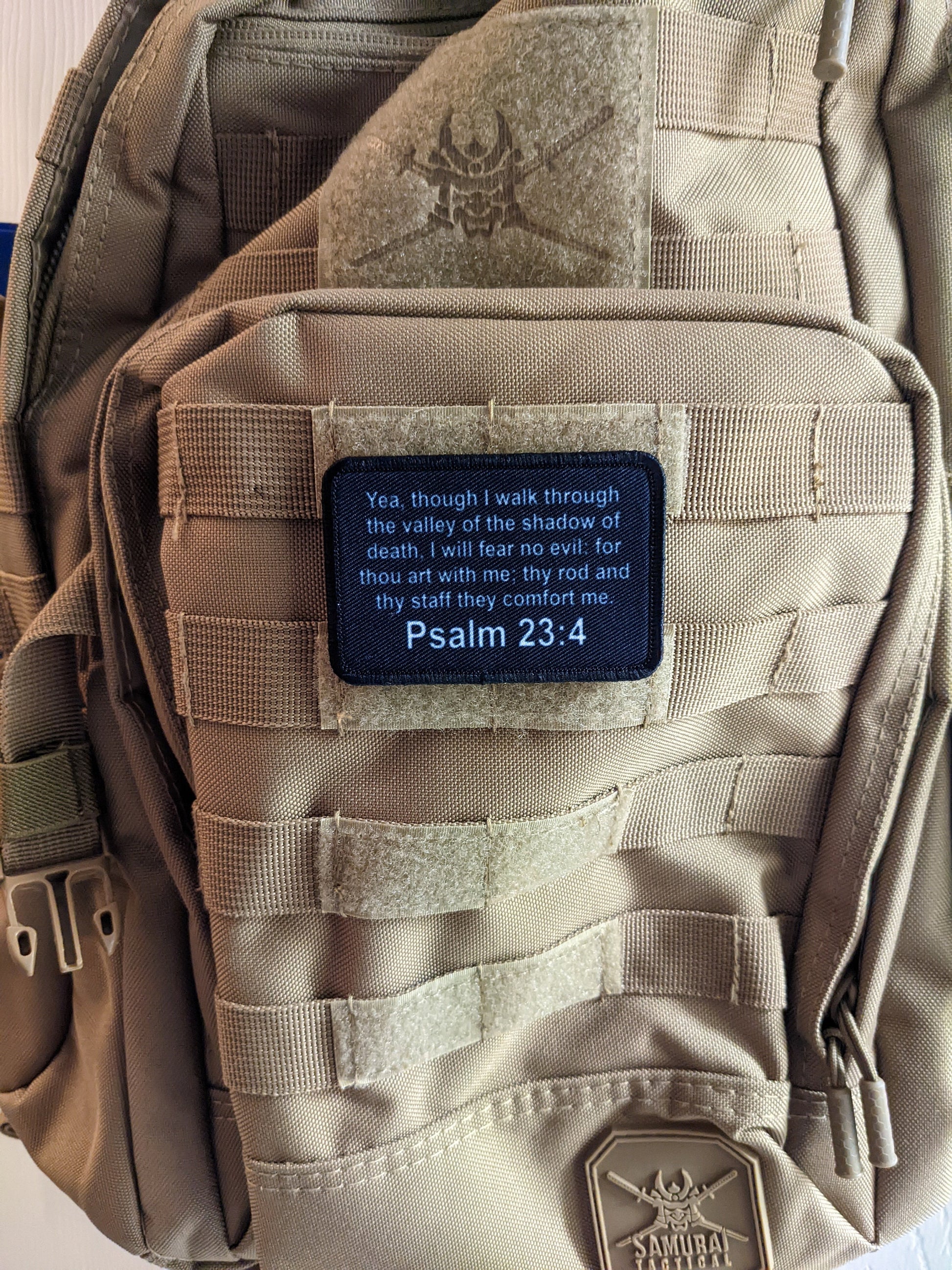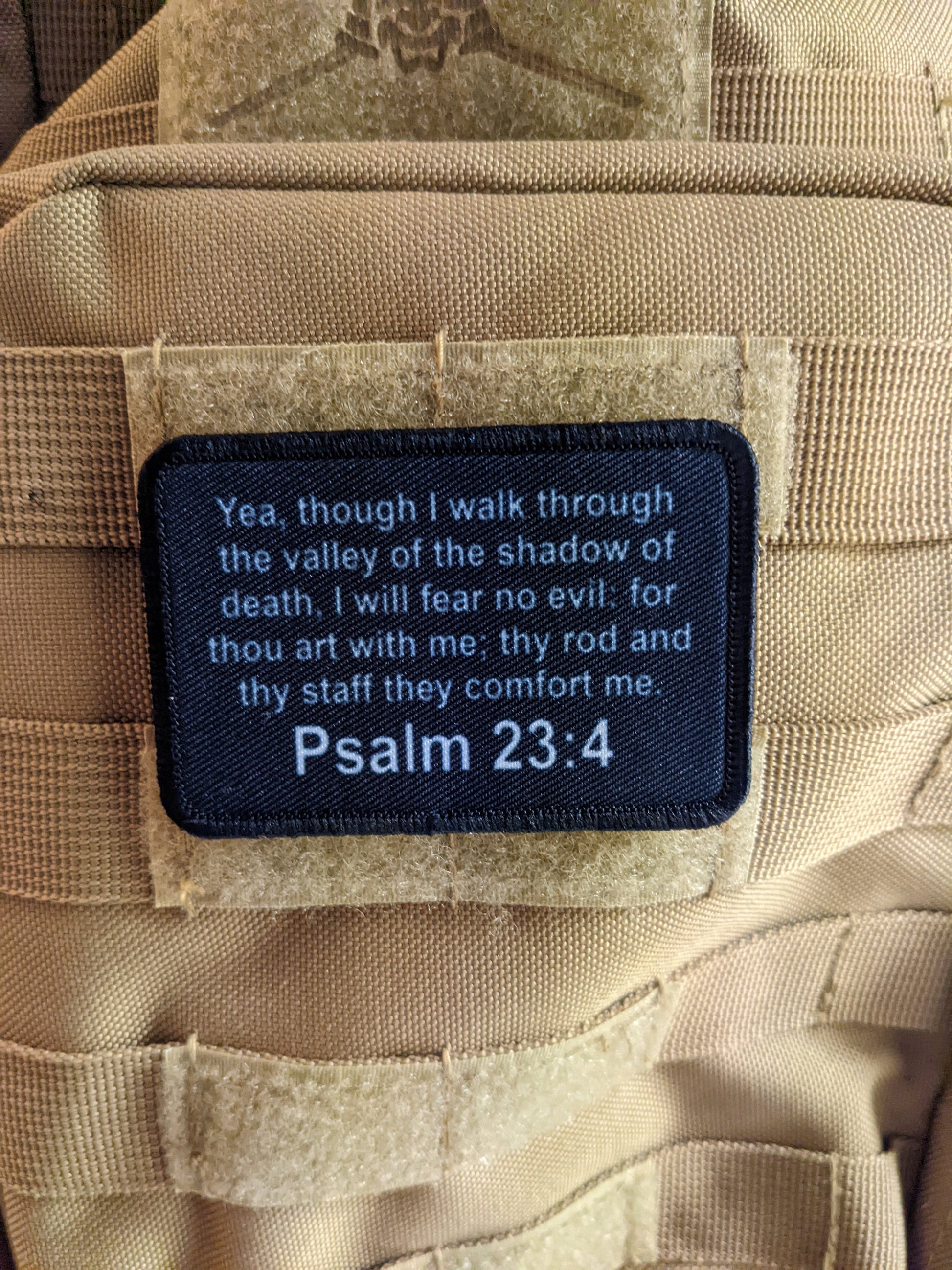 Bible verse Psalms 23:4 valley of the shadow of death 2"x3" removable morale patch with hook and loop for hat