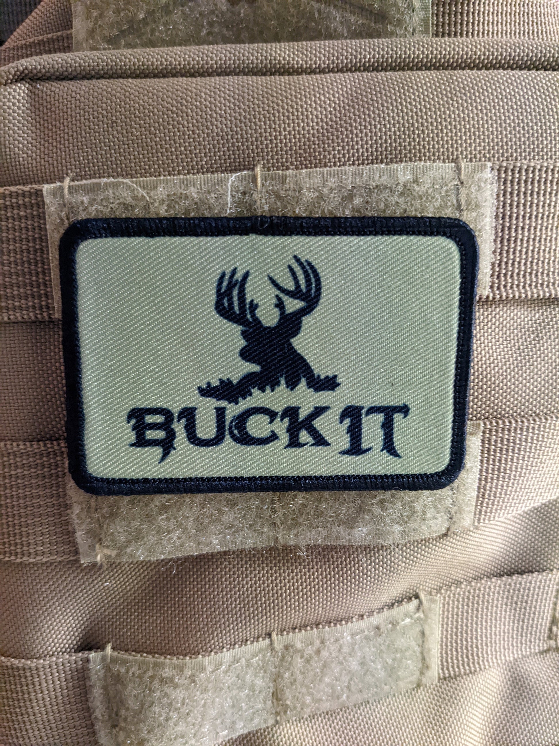 BUCK IT deer hunting funny joke patch 2"x3" morale patch with hook and loop backing