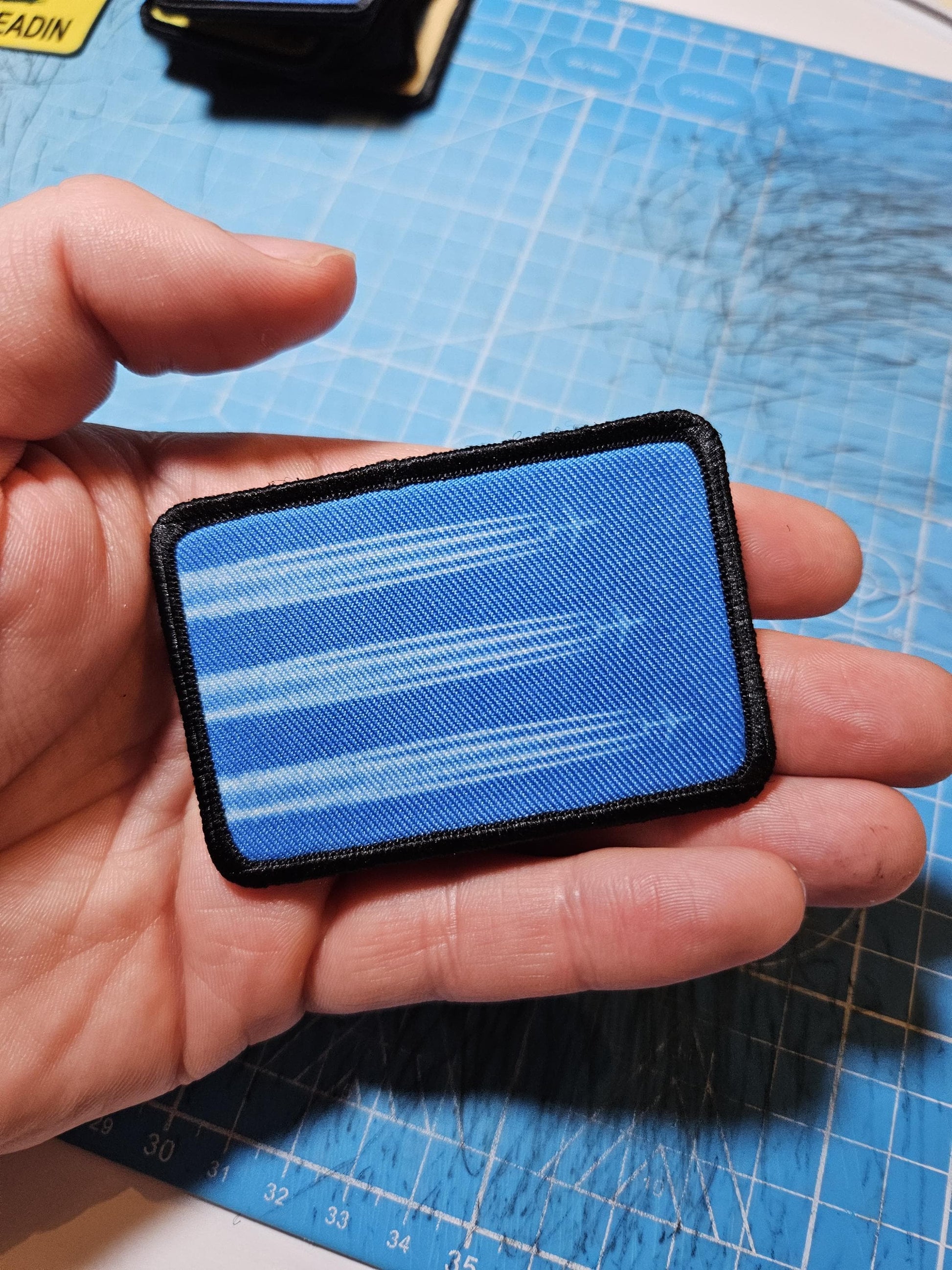 each patch measured 2" x 3" and has a hook and loop back with a matching hook and loop pad that can be sewn onto clothing or bags to creates a space for your new patch.