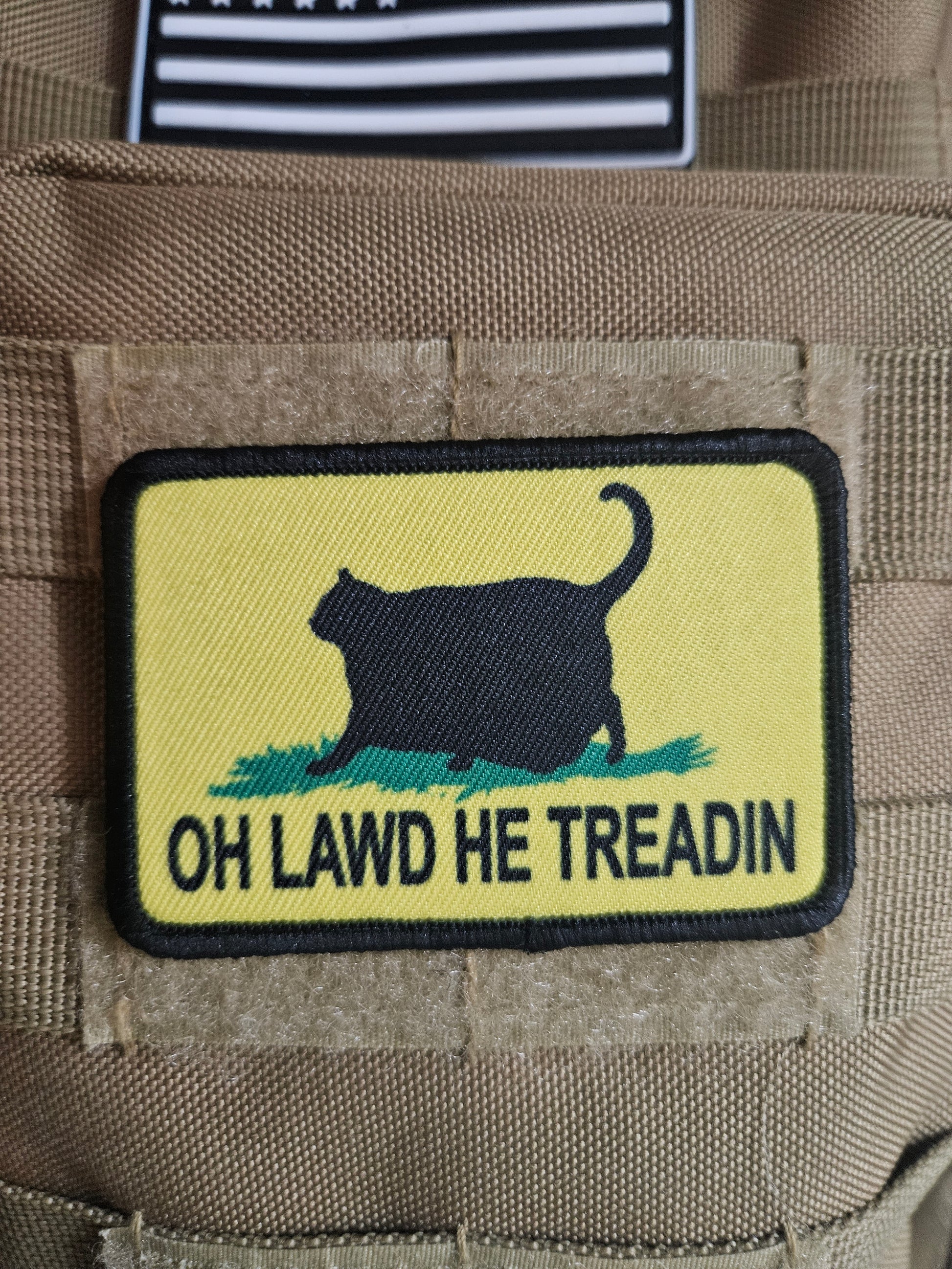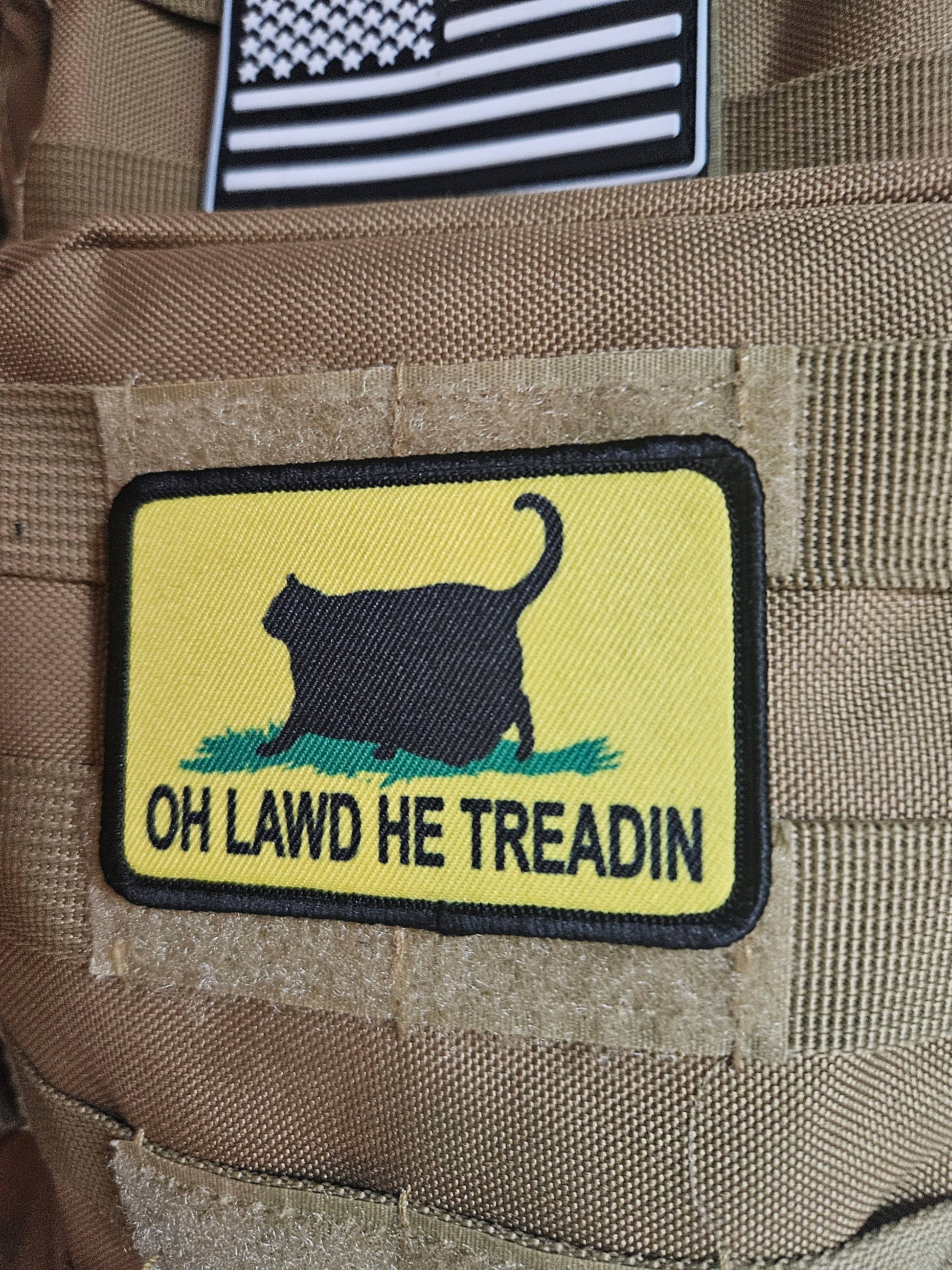 Black Oh lawd he treadin Gadsden flag meme 2"x3" removable morale patch with hook and loop backing