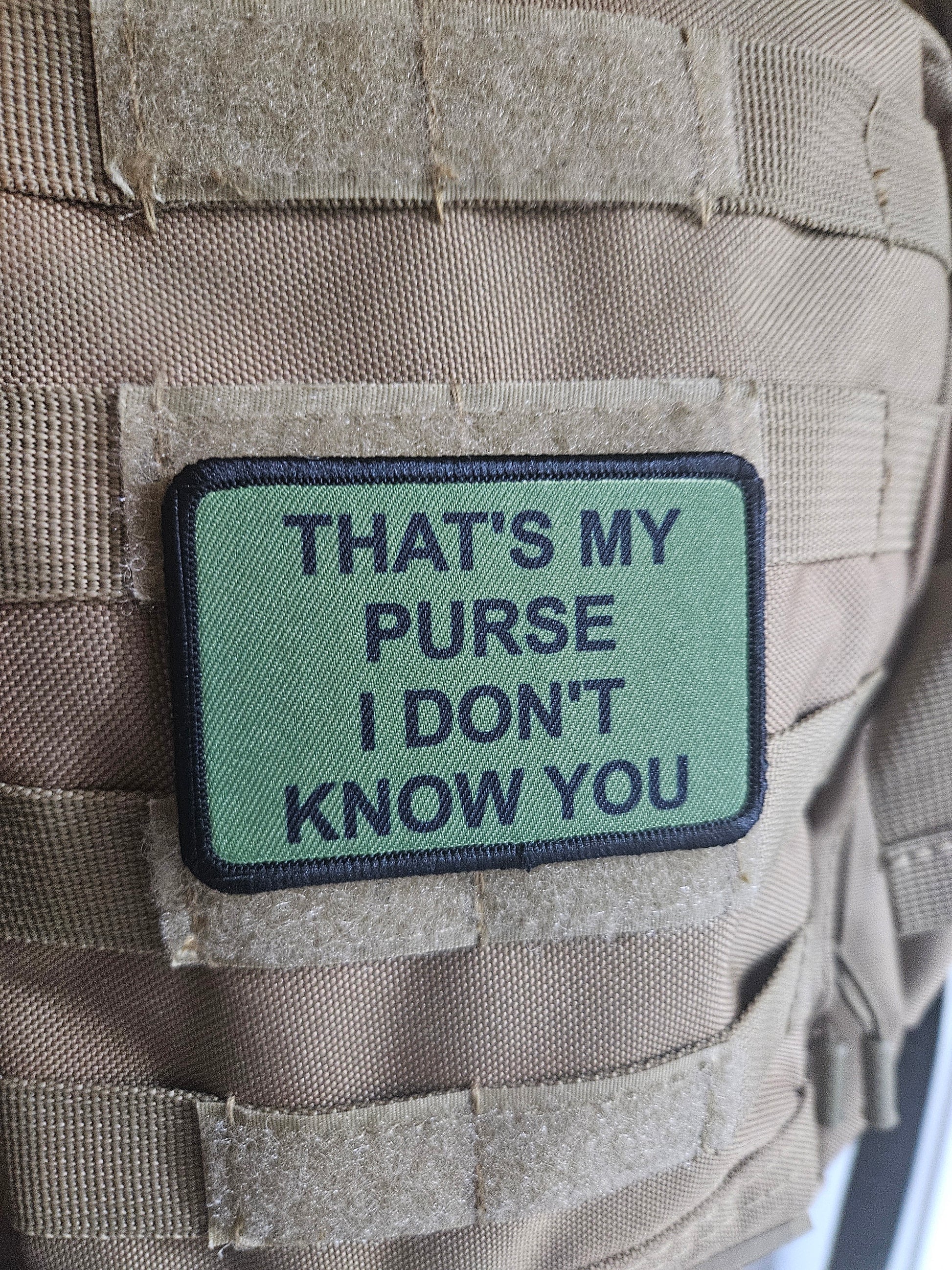 that's My Purse I don't Know you meme lol 2"x3" morale patch with hook and loop backing green