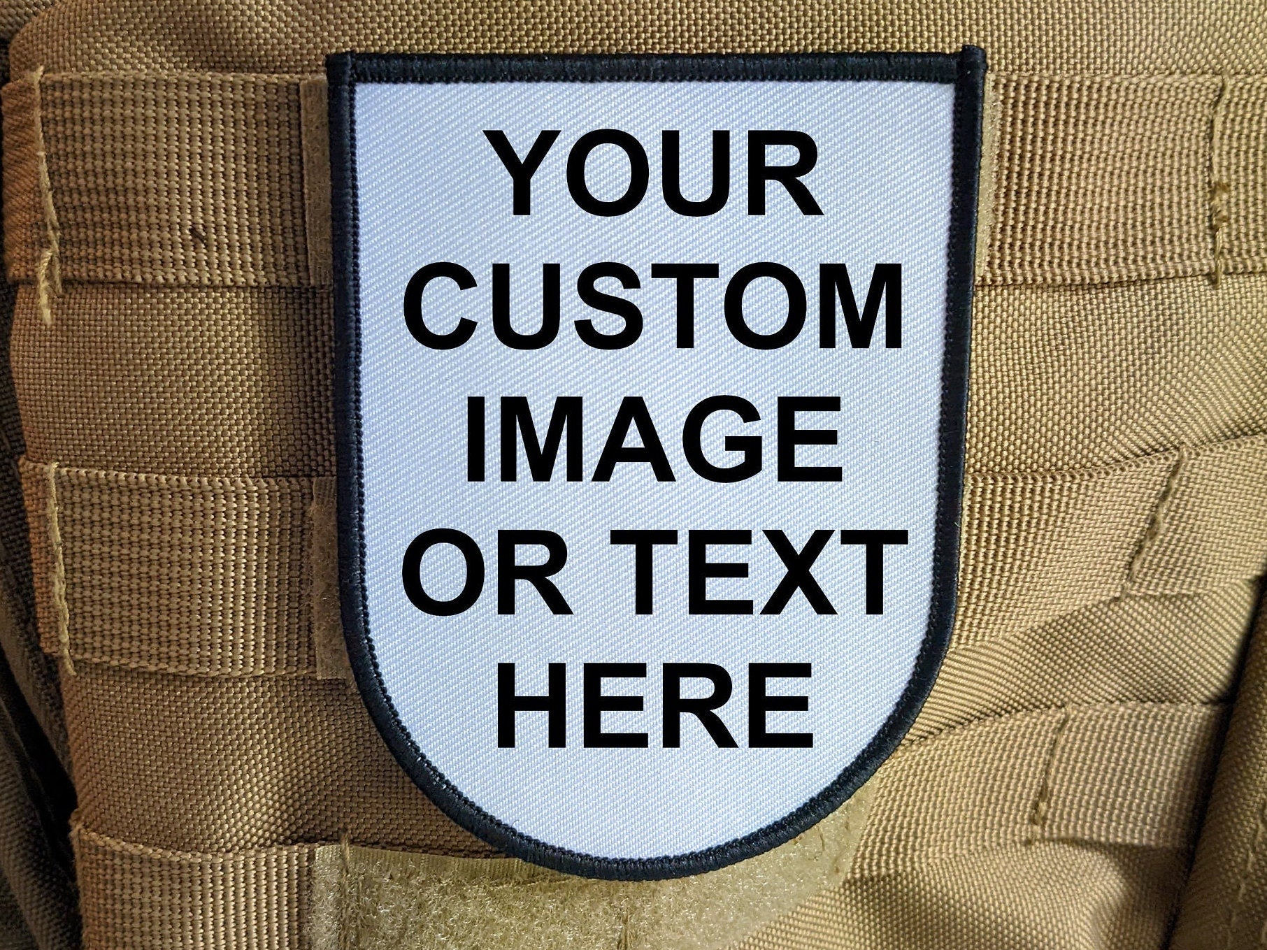 Custom choose your own image or text 3"x4" shield shaped hook & loop morale patch