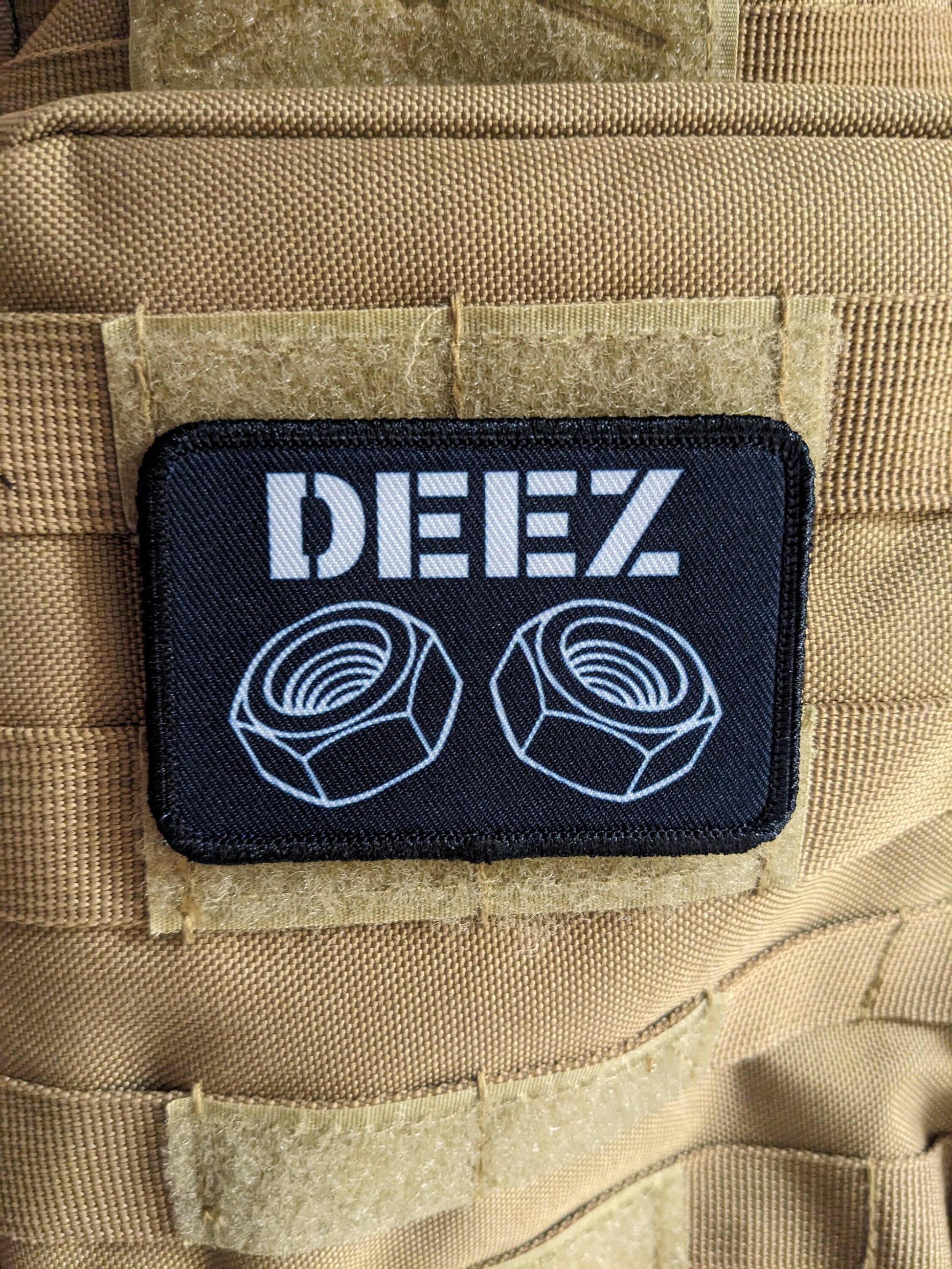 Deez nuts and bolts funny removable patch 2"x3" morale patch with hook and loop backing