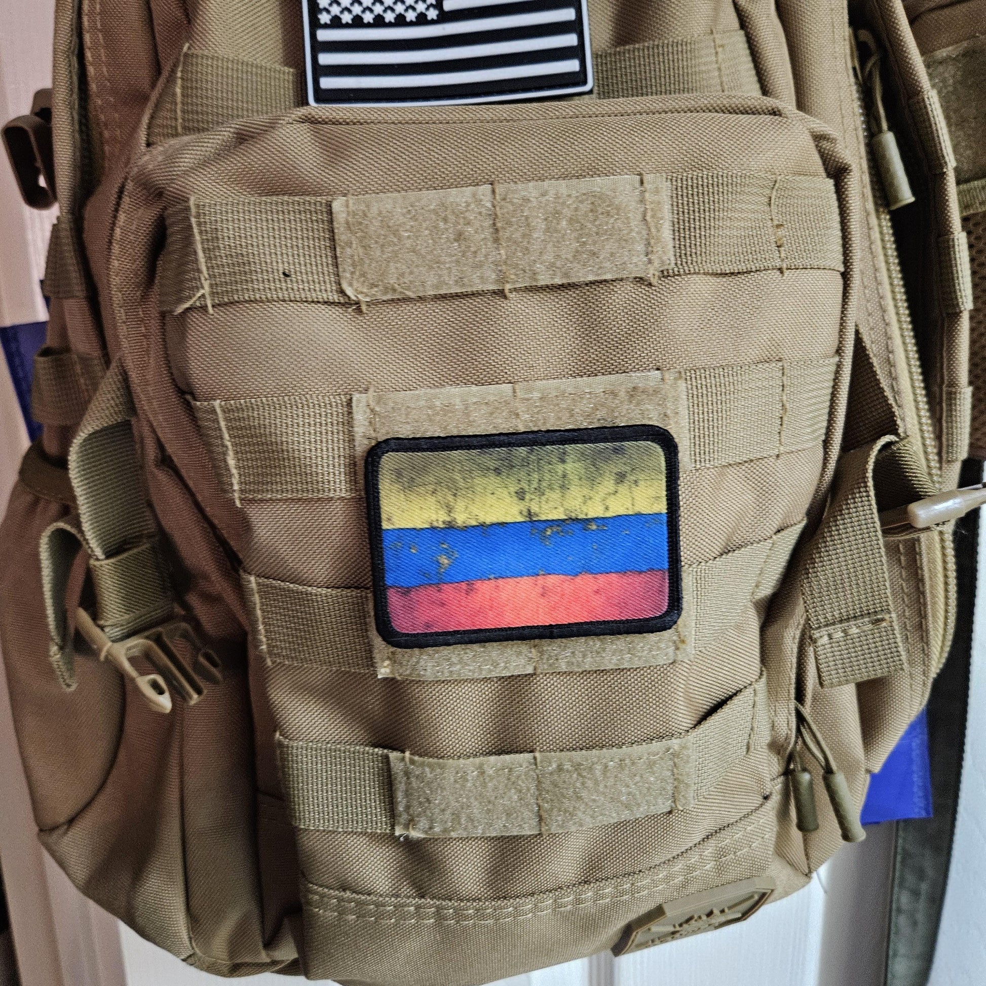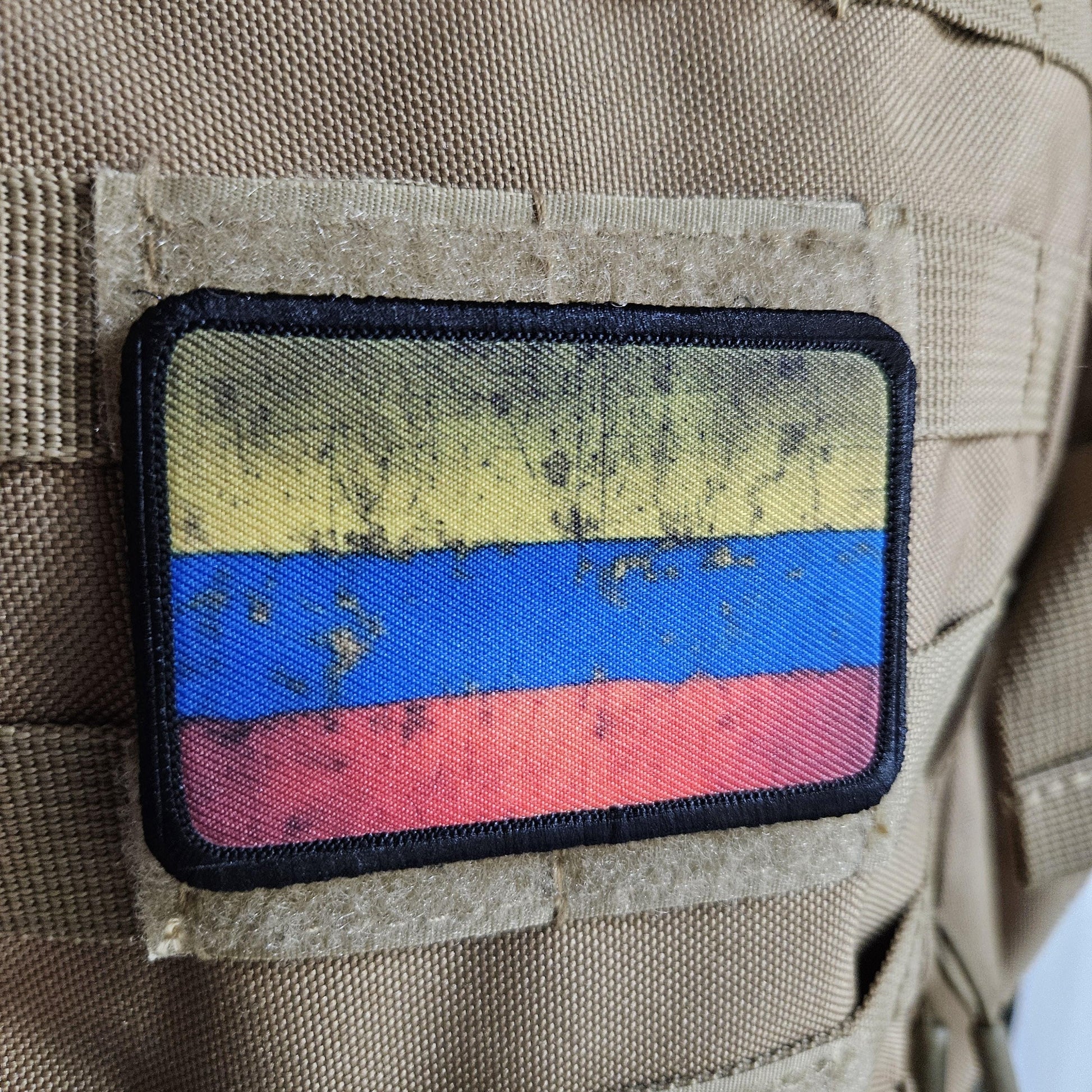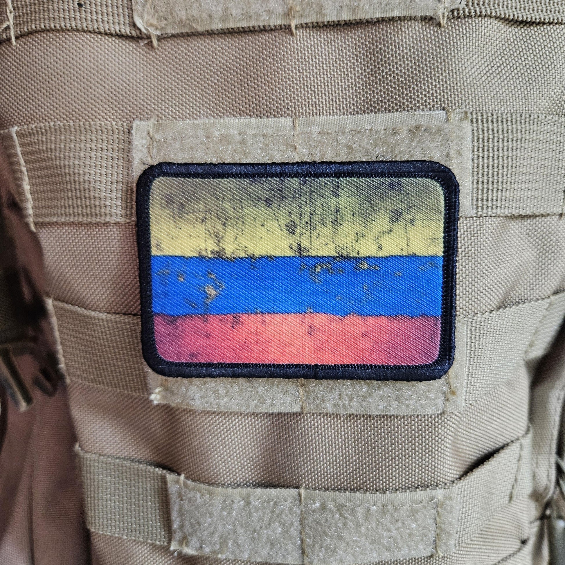 distressed Colombian flag 2"x3" morale patch with hook and loop backing