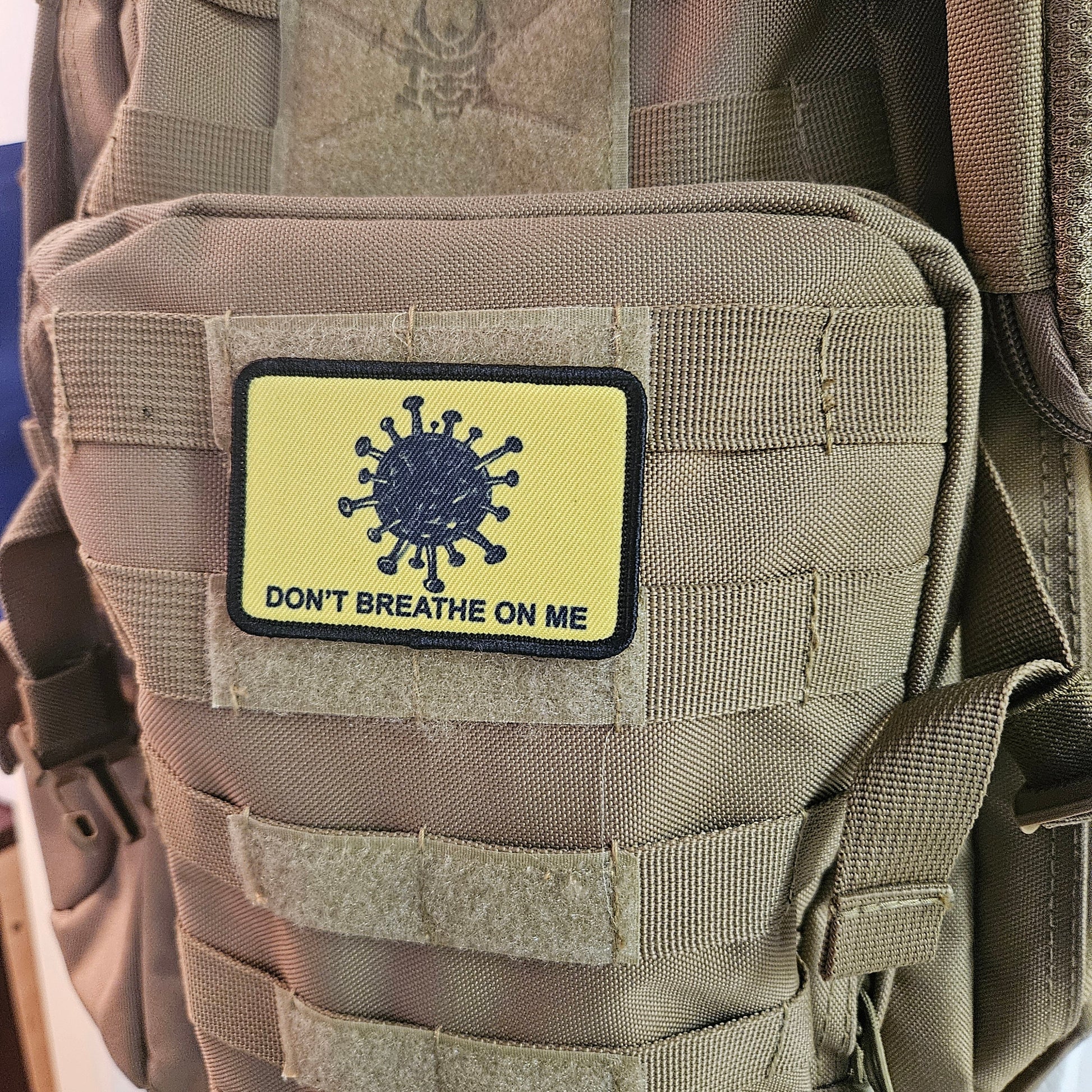 Don't breathe on me Gadsden flag meme 2"x3" removable morale patch with hook and loop backing