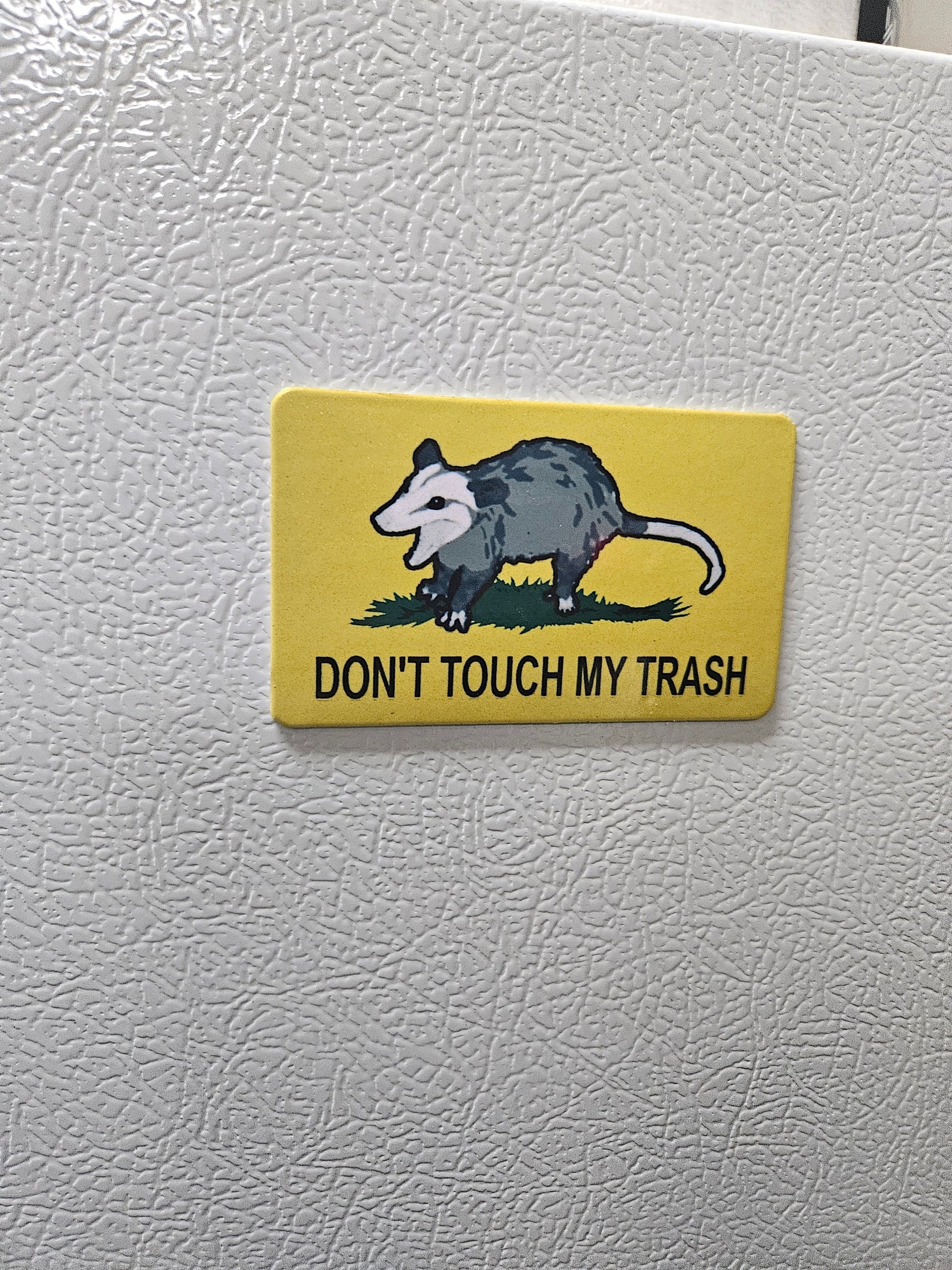 Don't touch my trash Possum Gadsden flag parody fridge magnet 2x3.5" dimensions