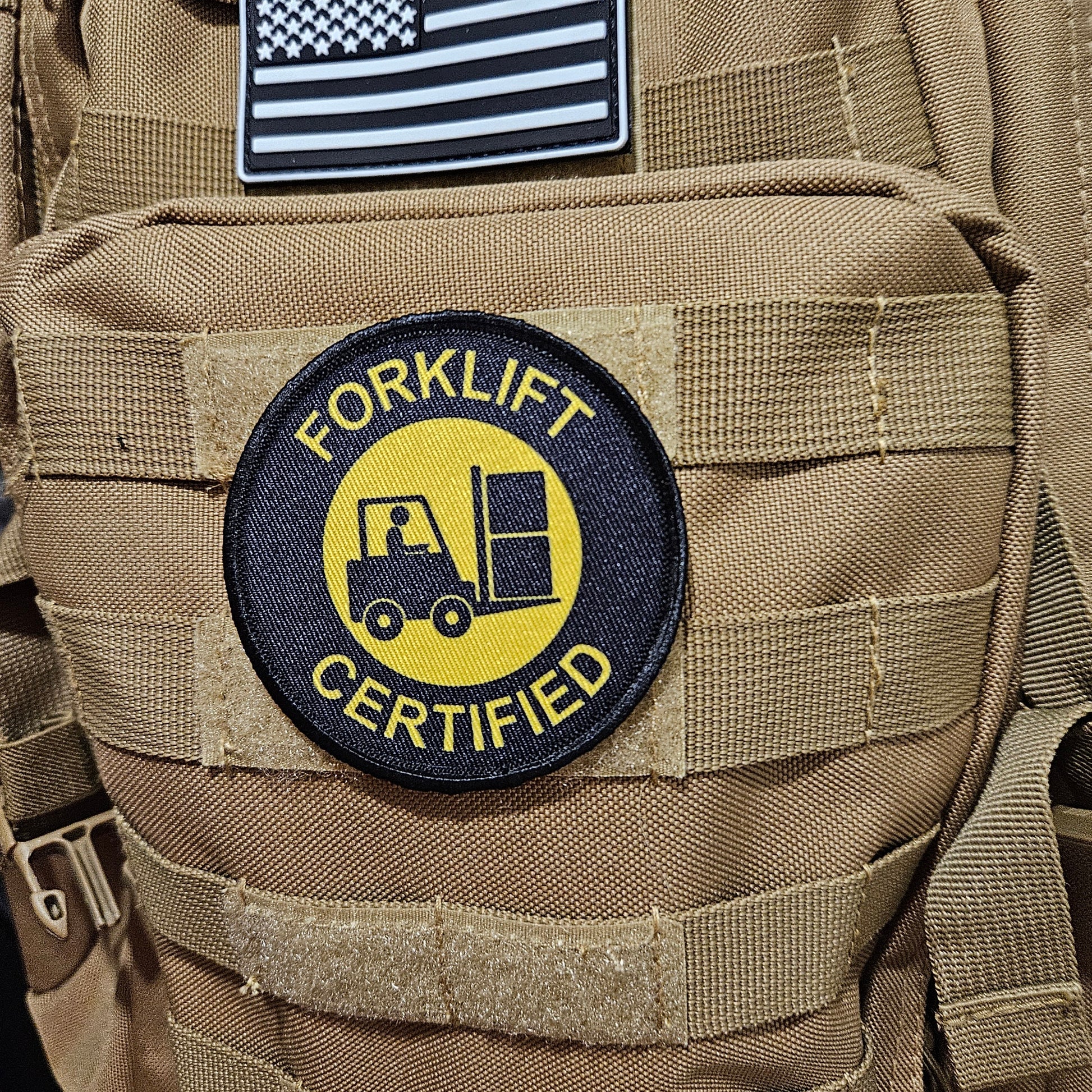 Forklift certified meme 3" circle morale patch with hook and loop backing