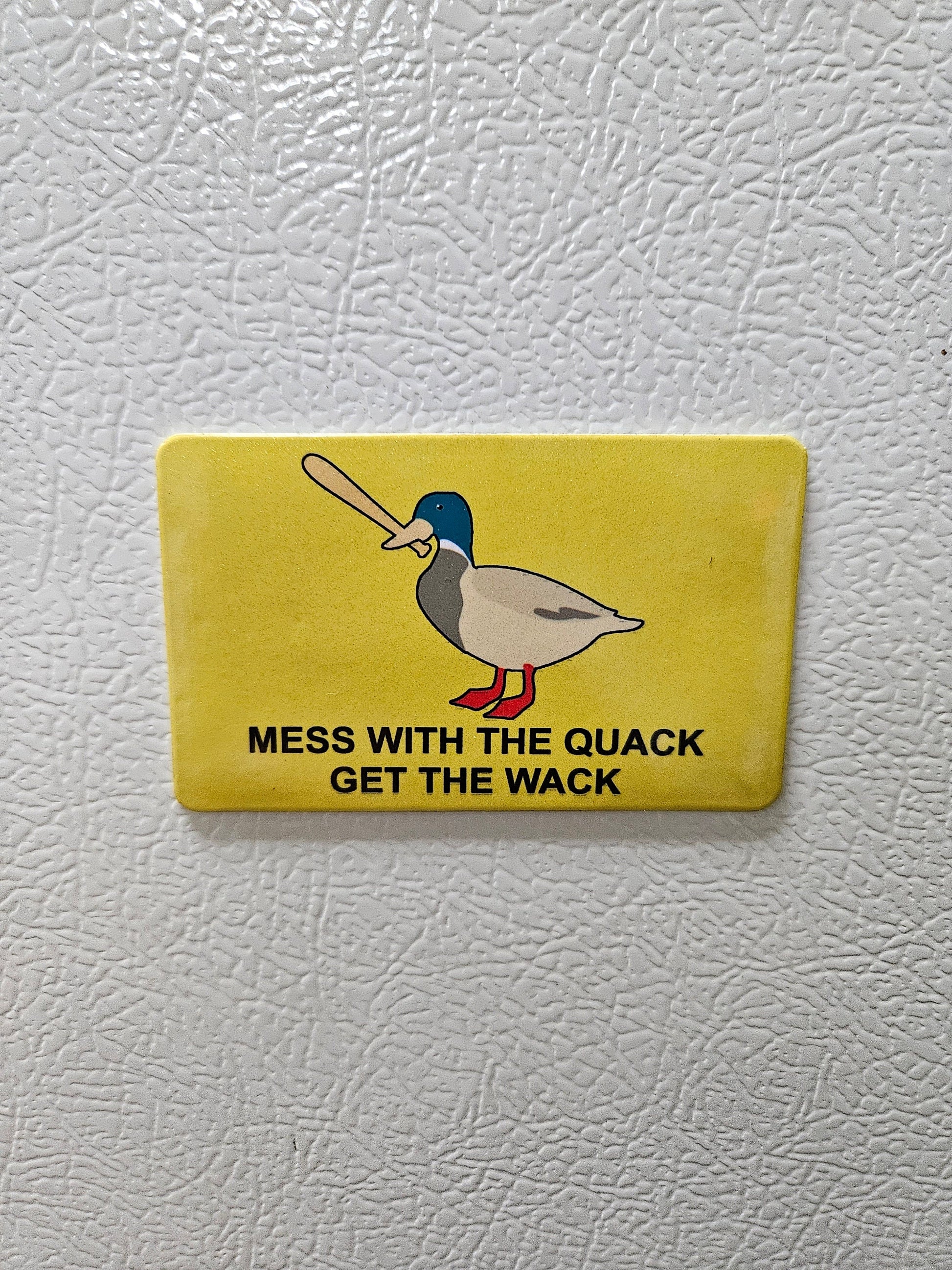 Funny mess with the quack get the wack Gadsden flag parody fridge magnet x3. 2x3.5" dimensions