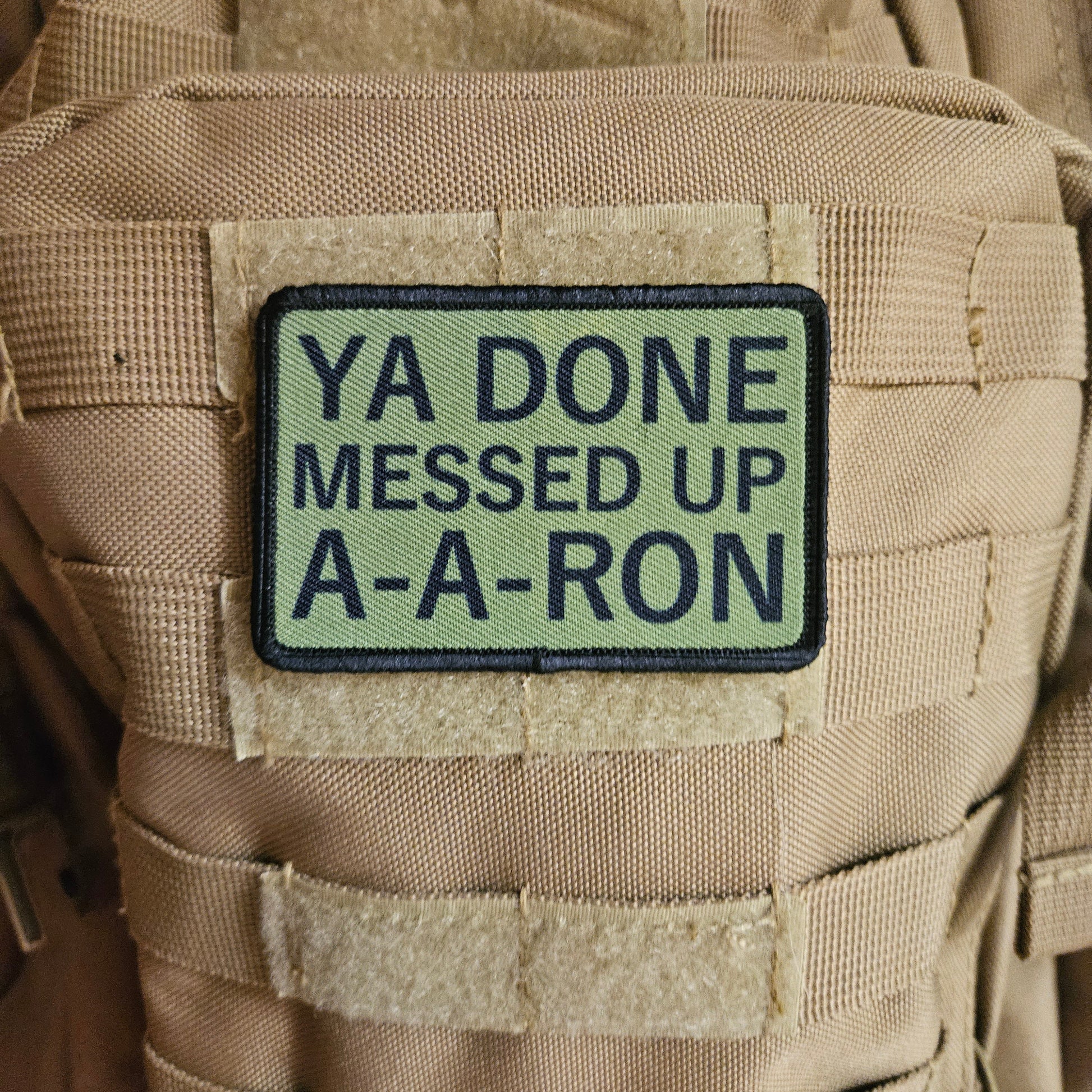 Green Ya done messed up a-a-ron meme 2"x3" removable morale patch with hook and loop backing