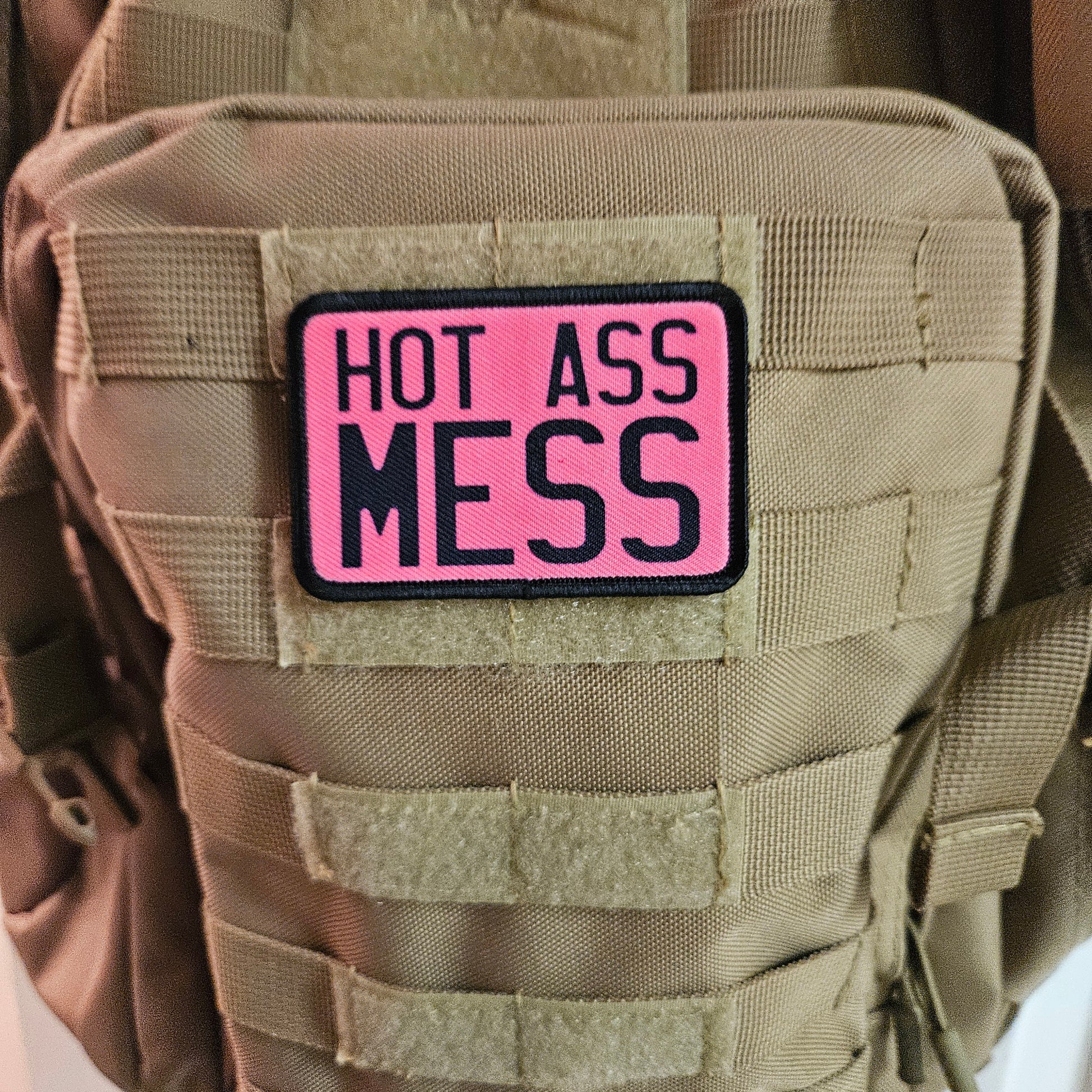 Hot mess funny meme 2"x3" removable morale patch with hook and loop backing
