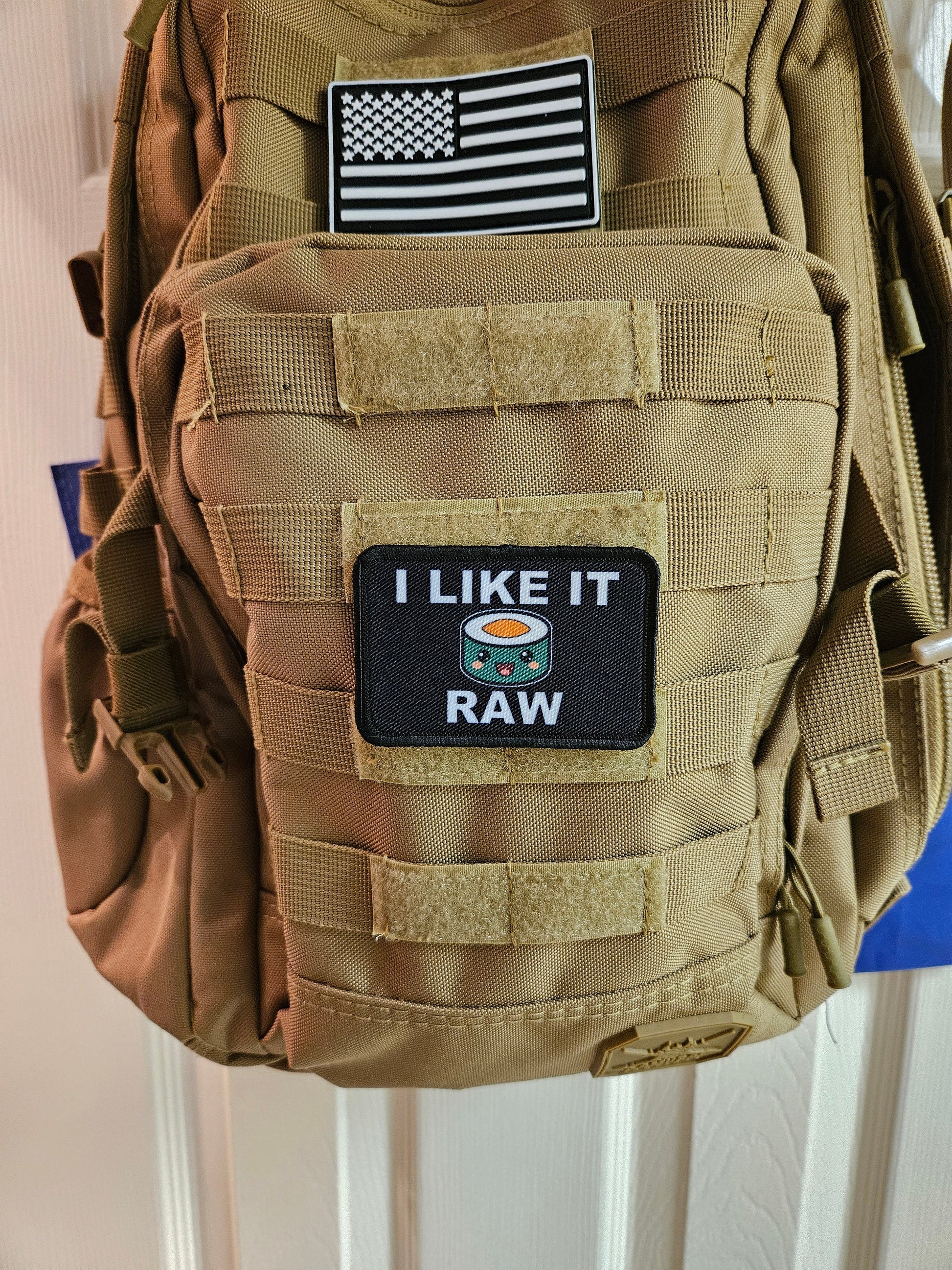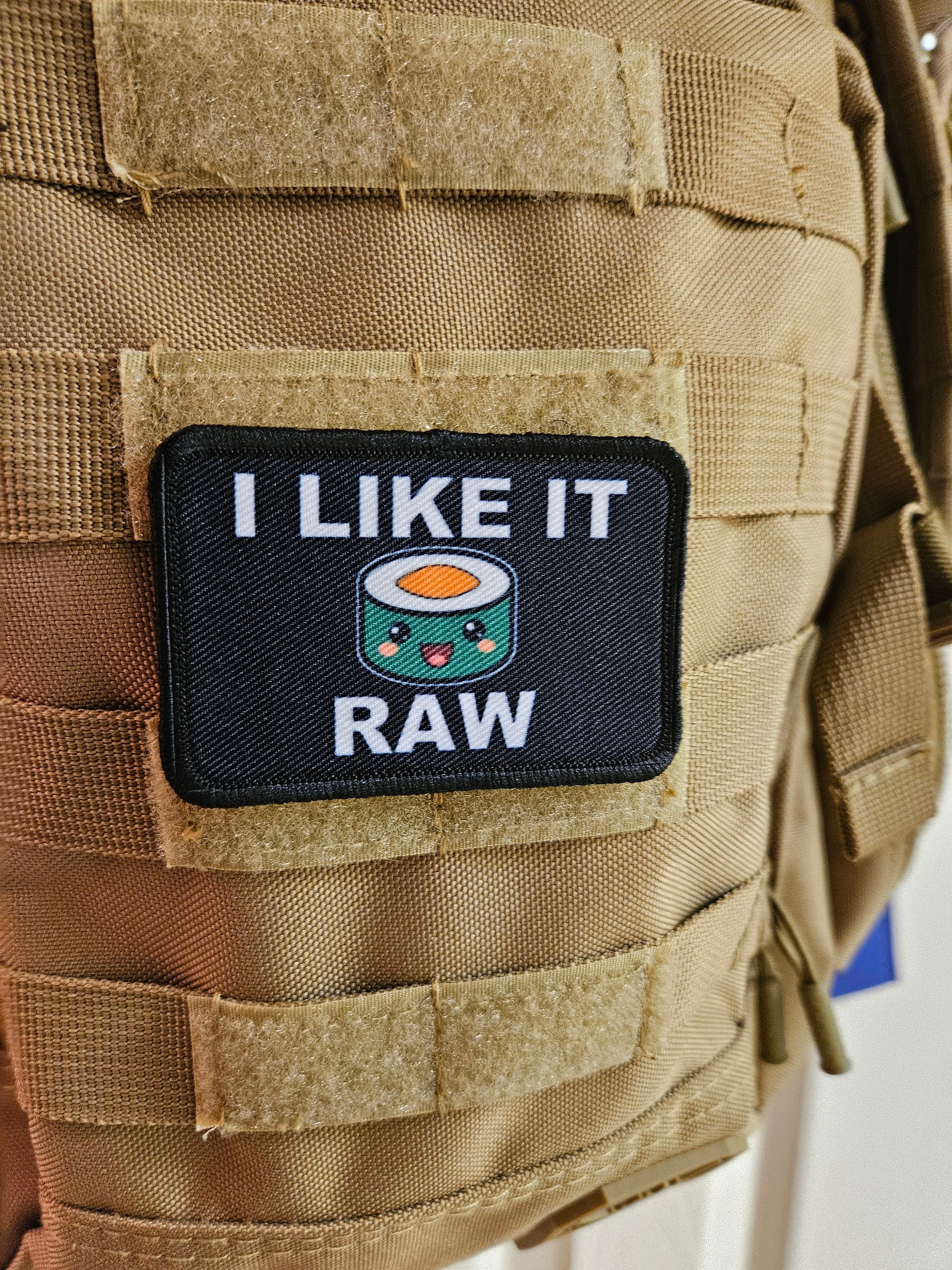 I like it raw sushi enthusiast meme cute making roll 2"x3" morale patch with hook and loop backing
