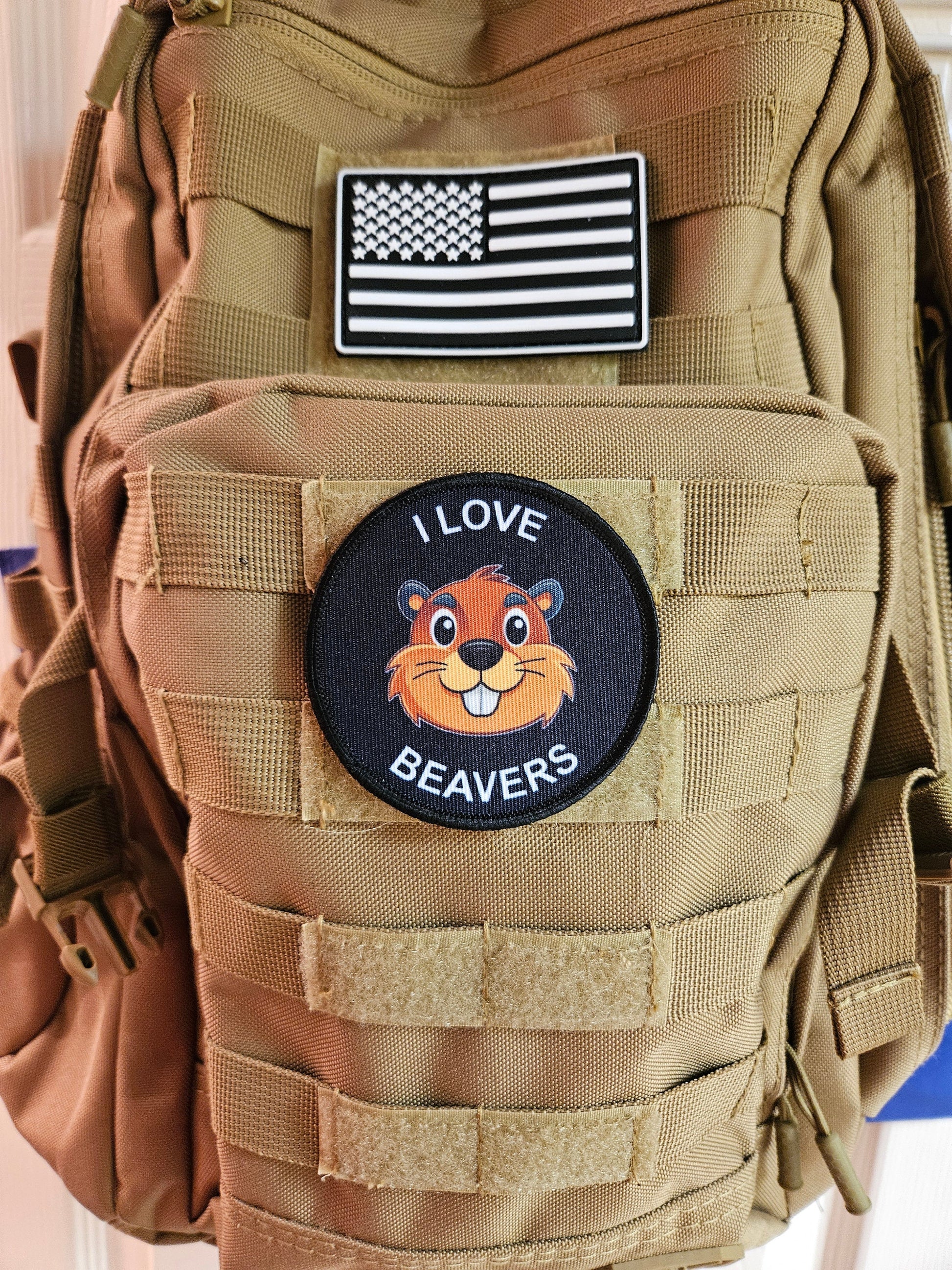 I love beavers meme 3" circle removable morale patch with hook and loop backing