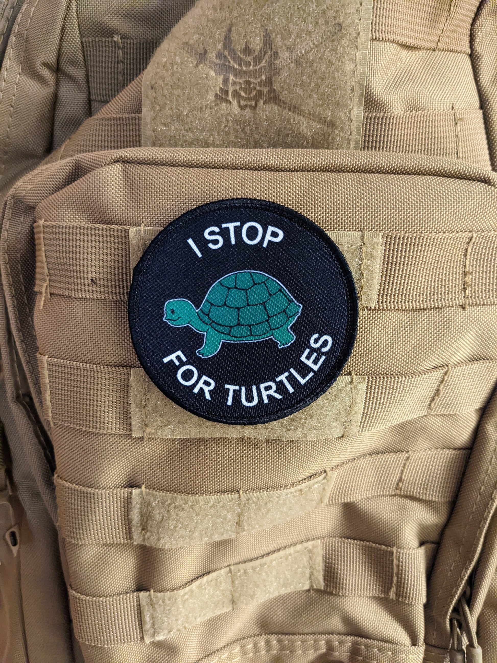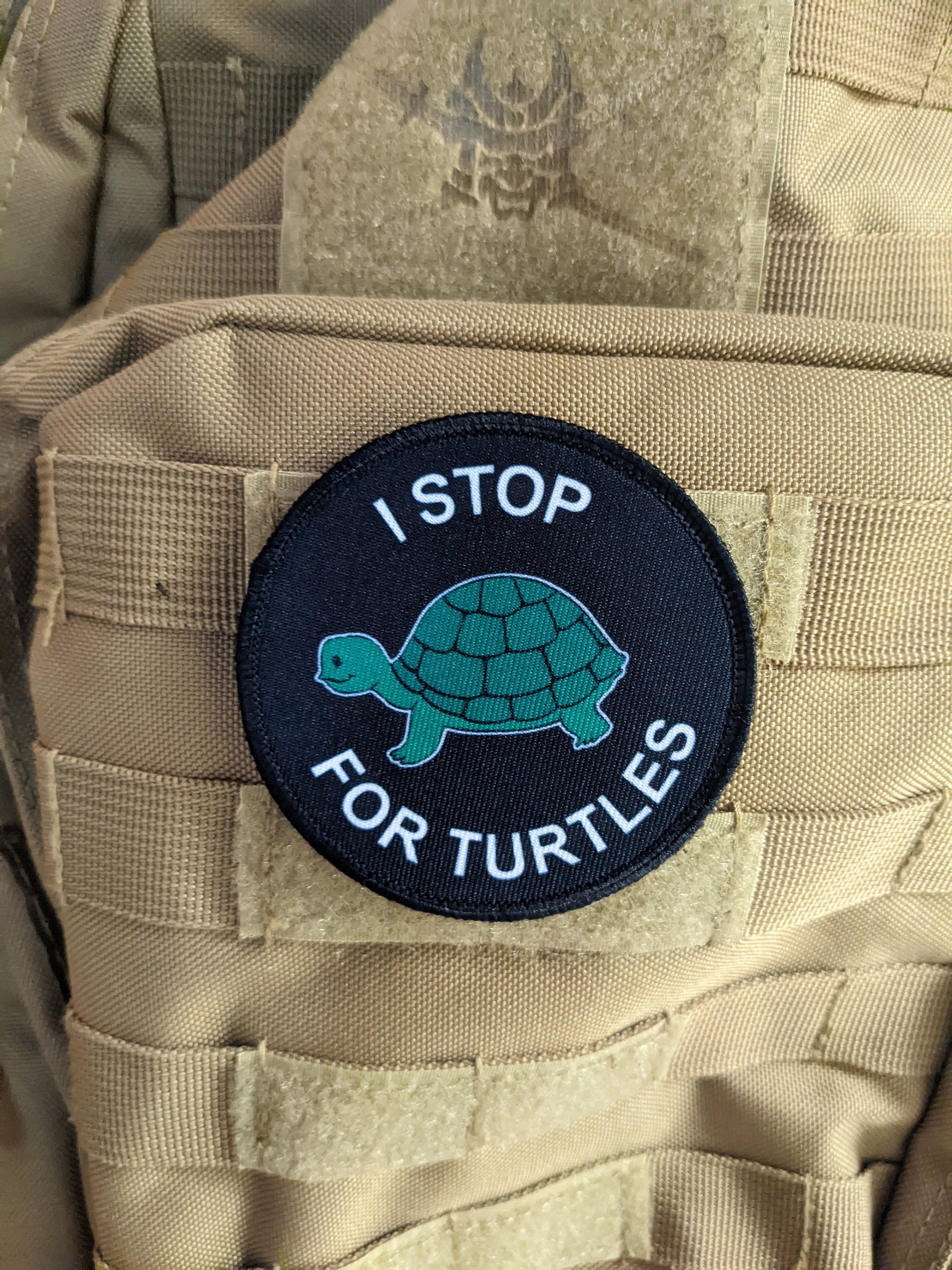 I stop for turtles save the turtles 3" circle removable morale patch with hook and loop backing