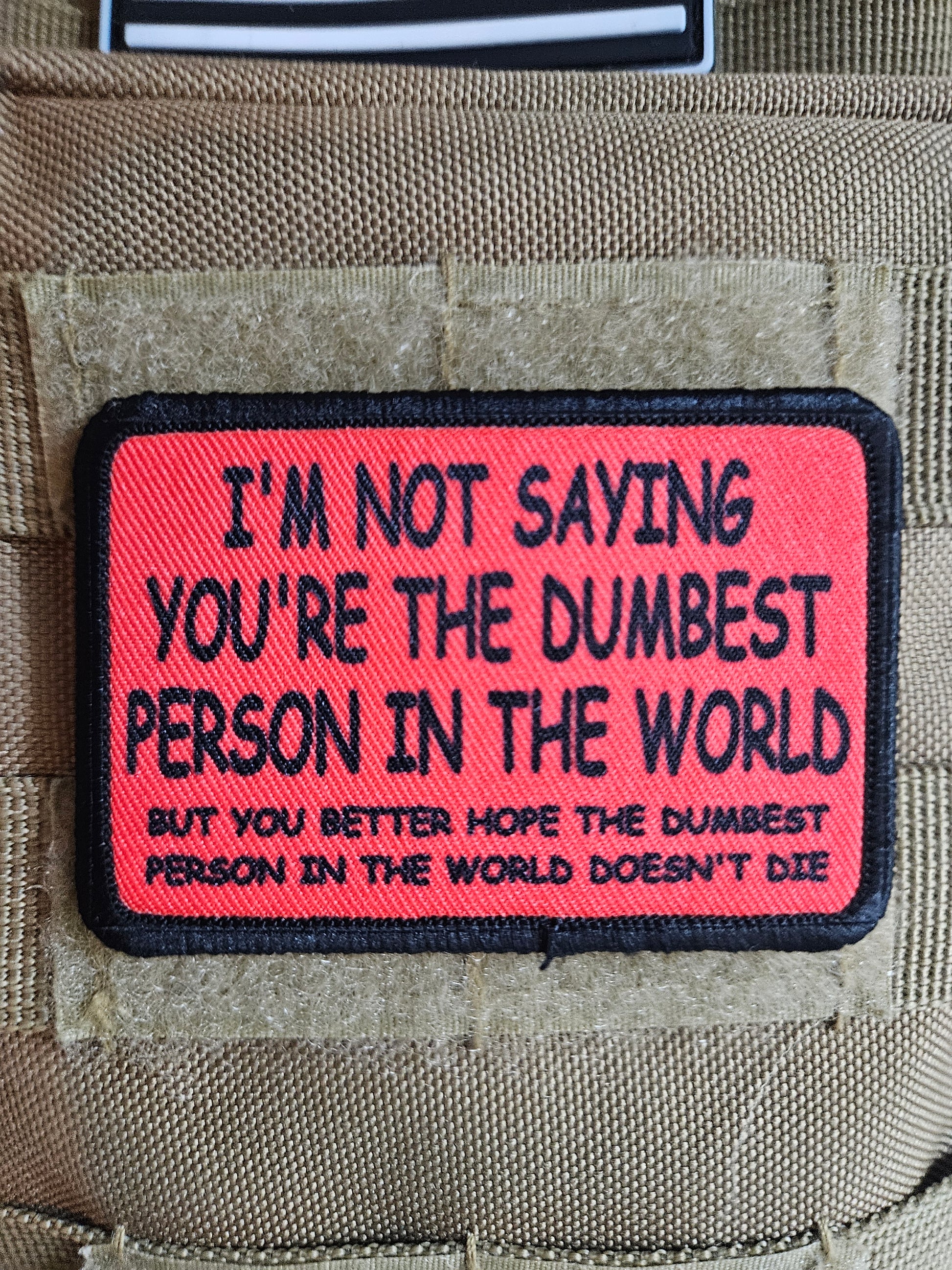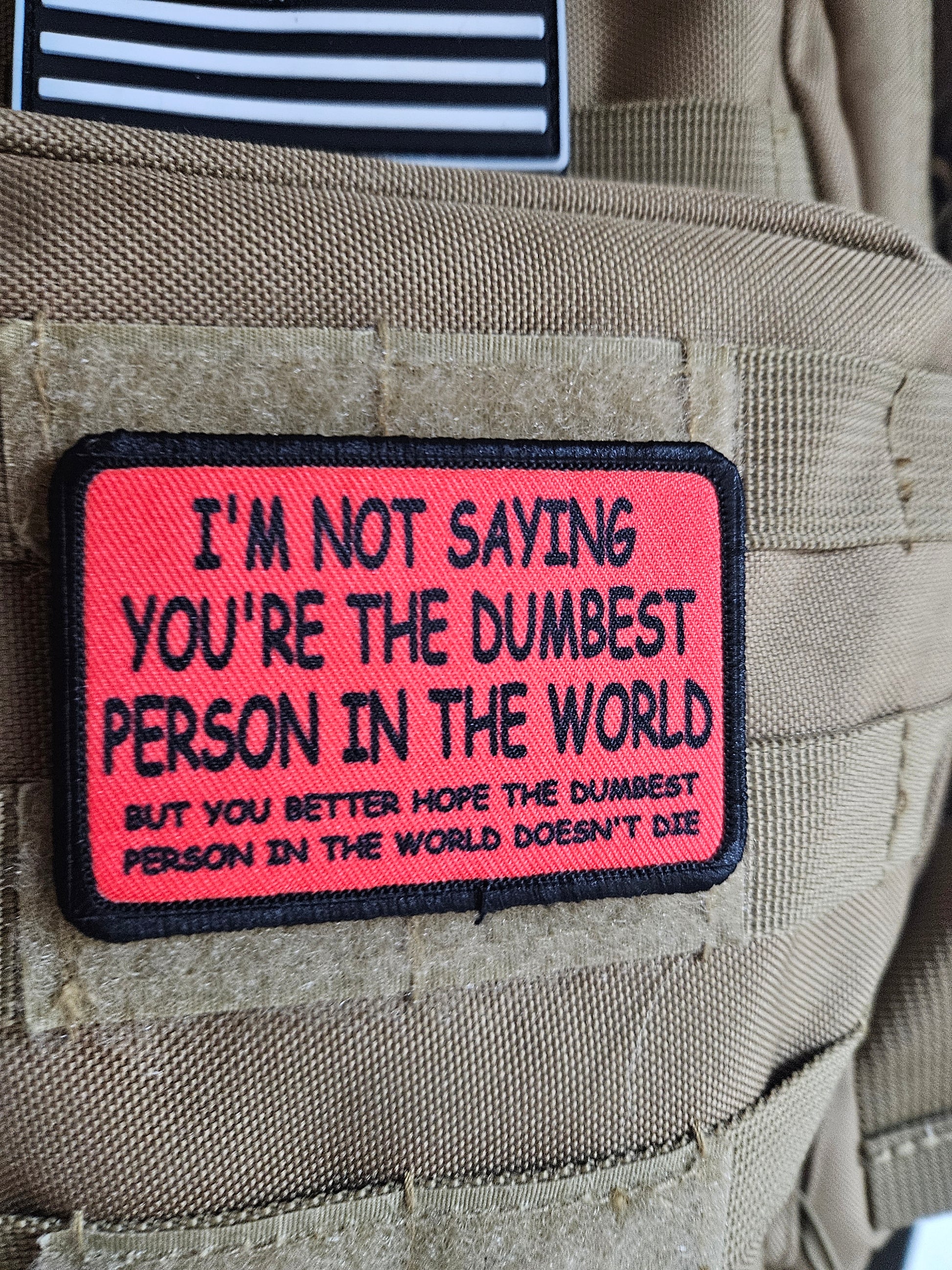 I'm not saying you're the dumbest person in the world, but you better hope the dumbest person in the world doesn't die 2"x3" removable morale patch with hook and loop backing