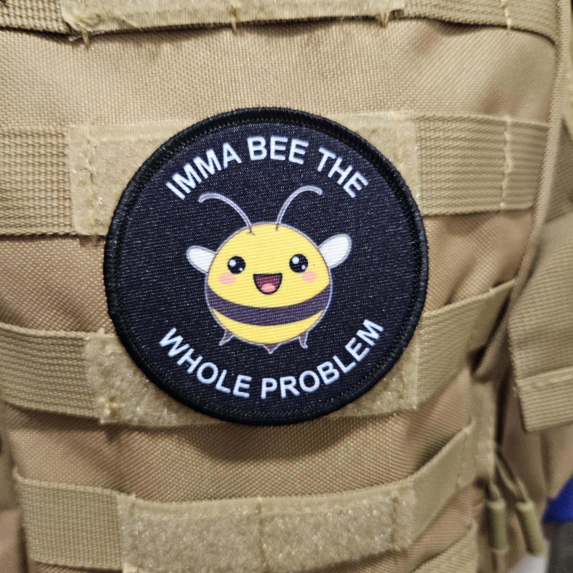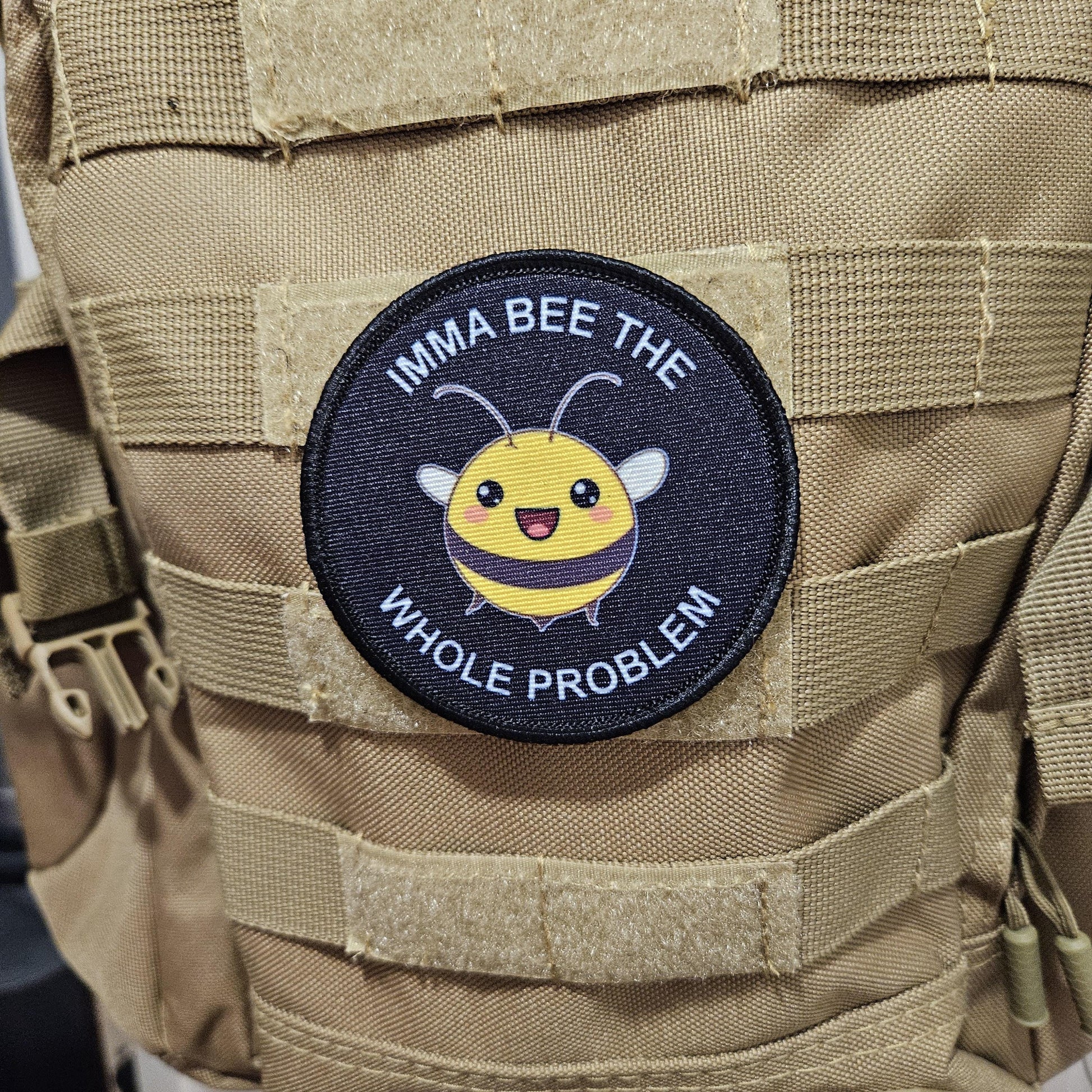 Imma bee the whole problem cute bee meme 3" circle removable morale patch with hook and loop backing