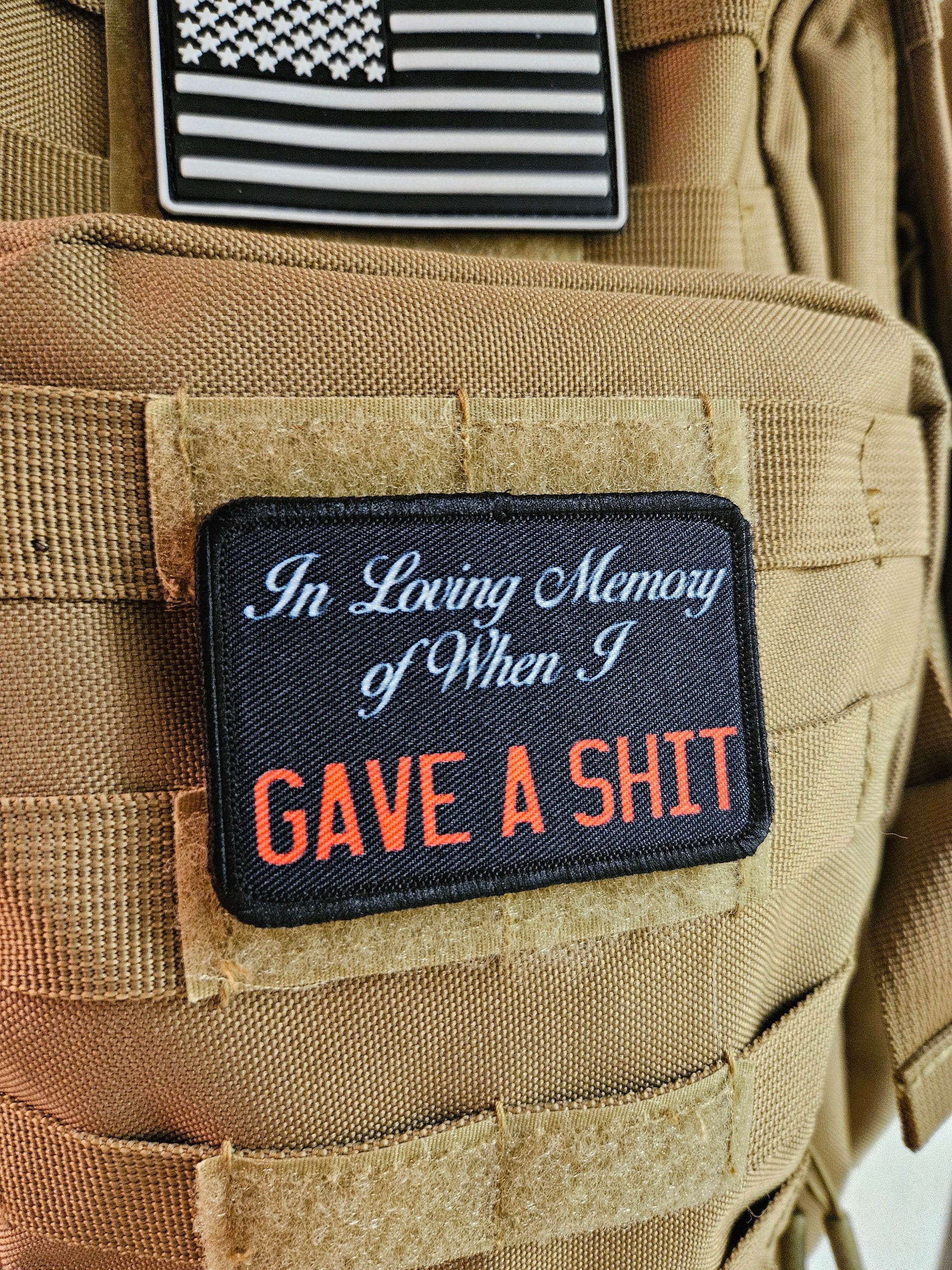 In loving memory of when i gave a shit meme 2"x3" removable morale patch with hook and loop backing