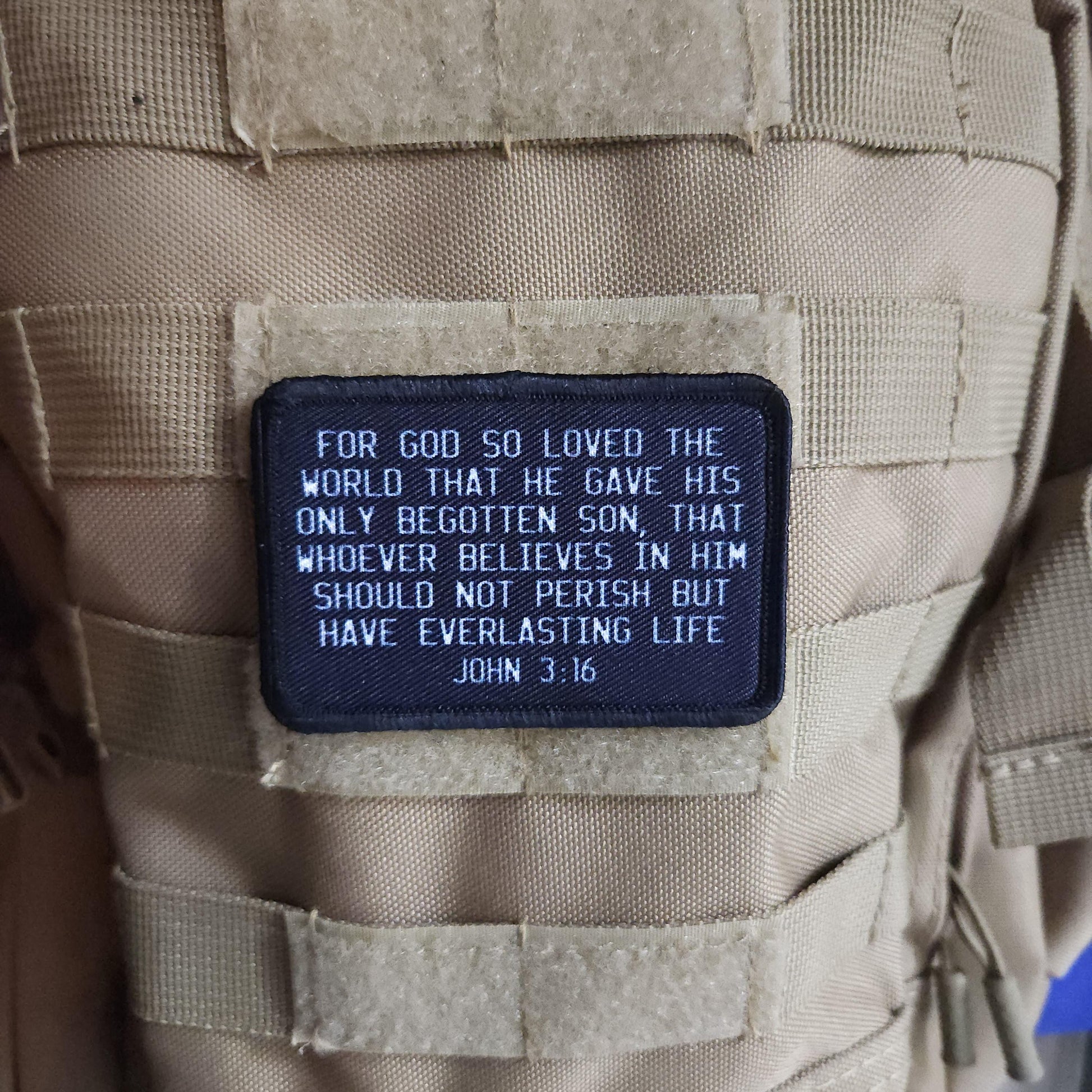 John 3:16 bible verse 2"x3" morale patch with hook and loop backing