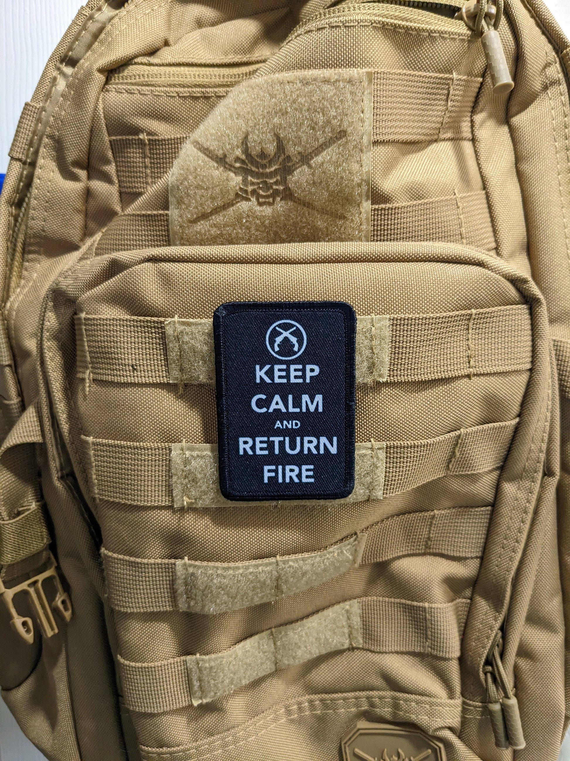 Keep calm and return fire 2nd amendment meme 2"x3" morale patch with hook and loop backing