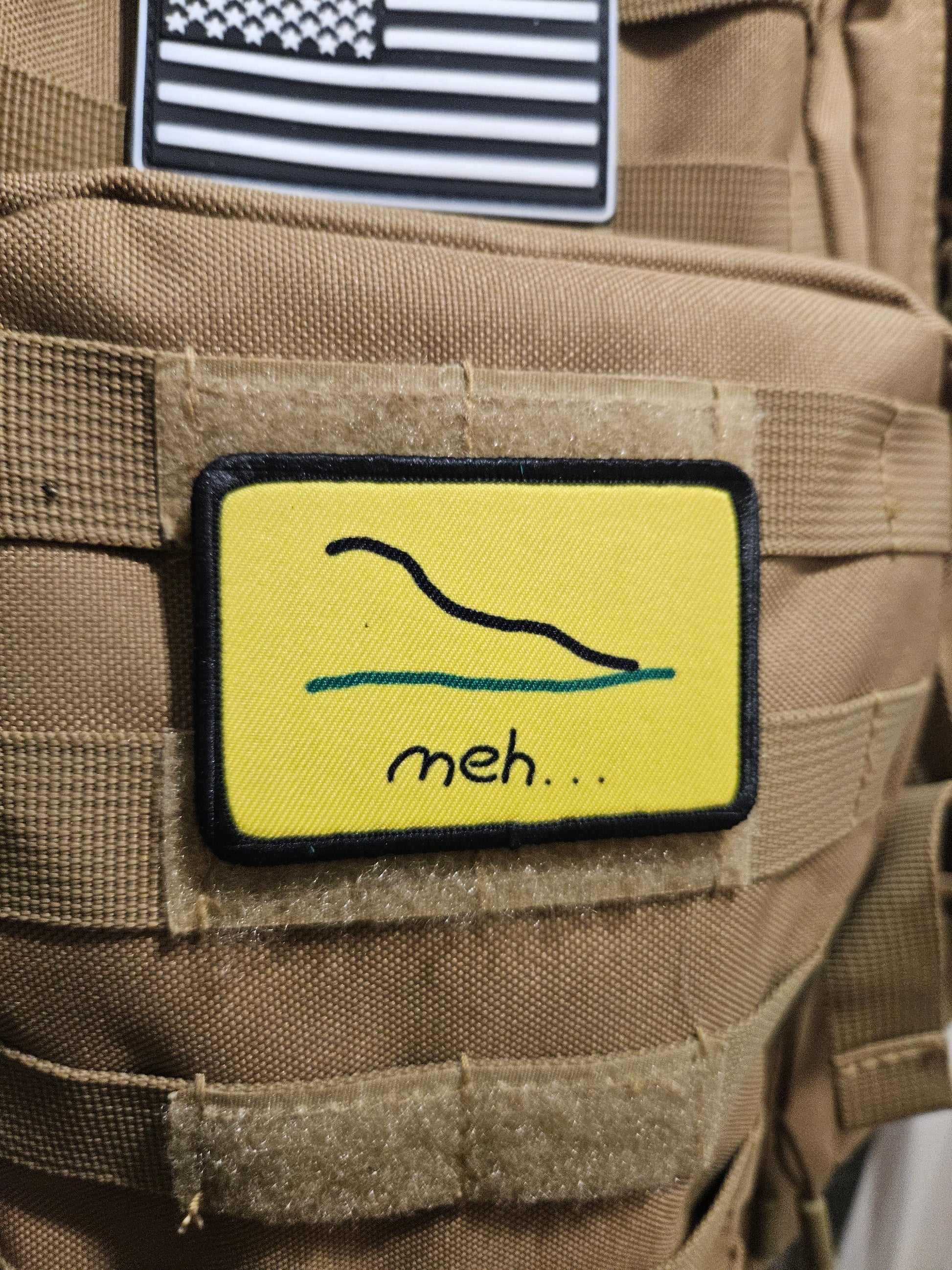 Meh bad drawing Gadsden flag meme 2"x3" removable morale patch with hook and loop backing