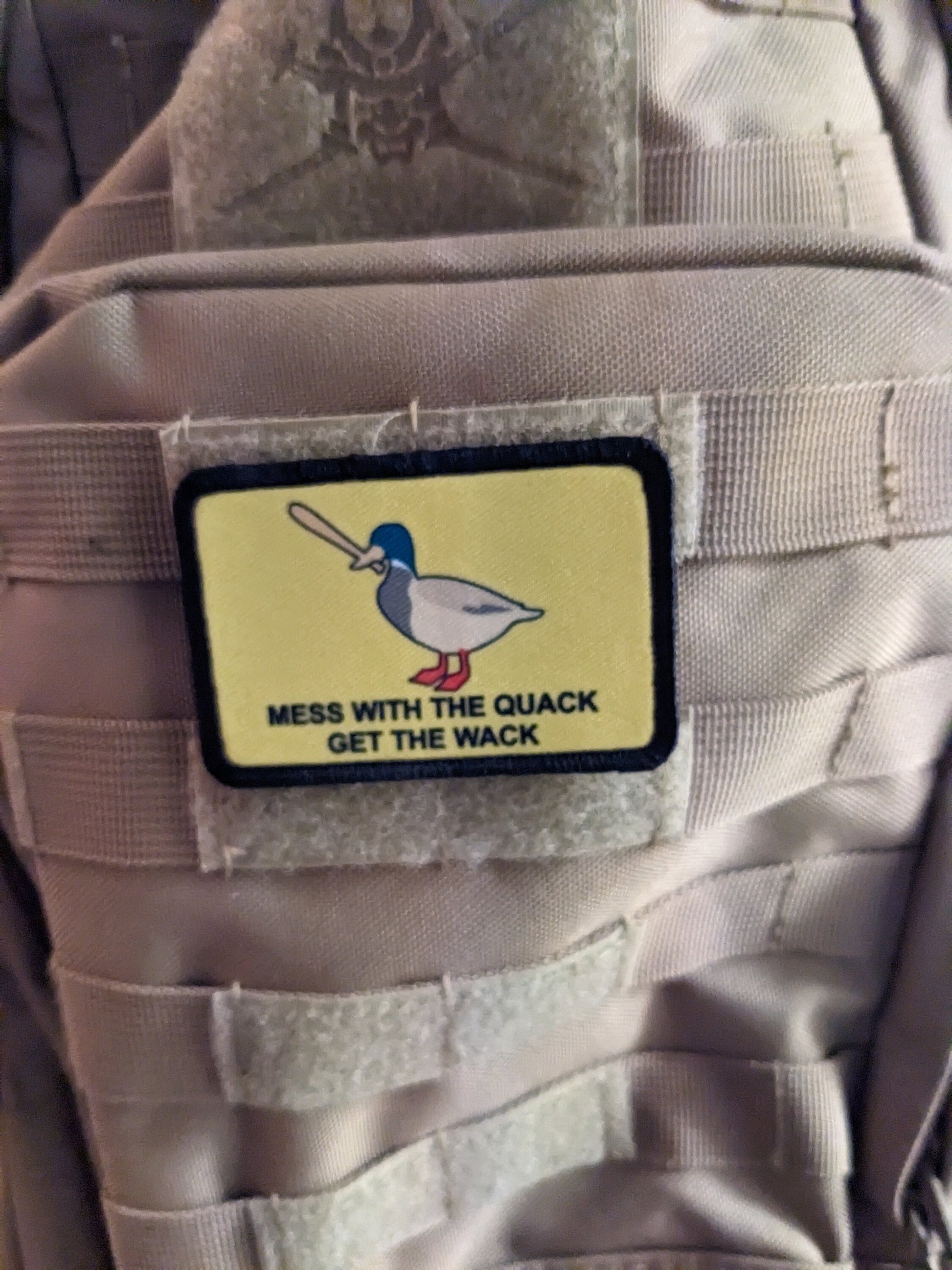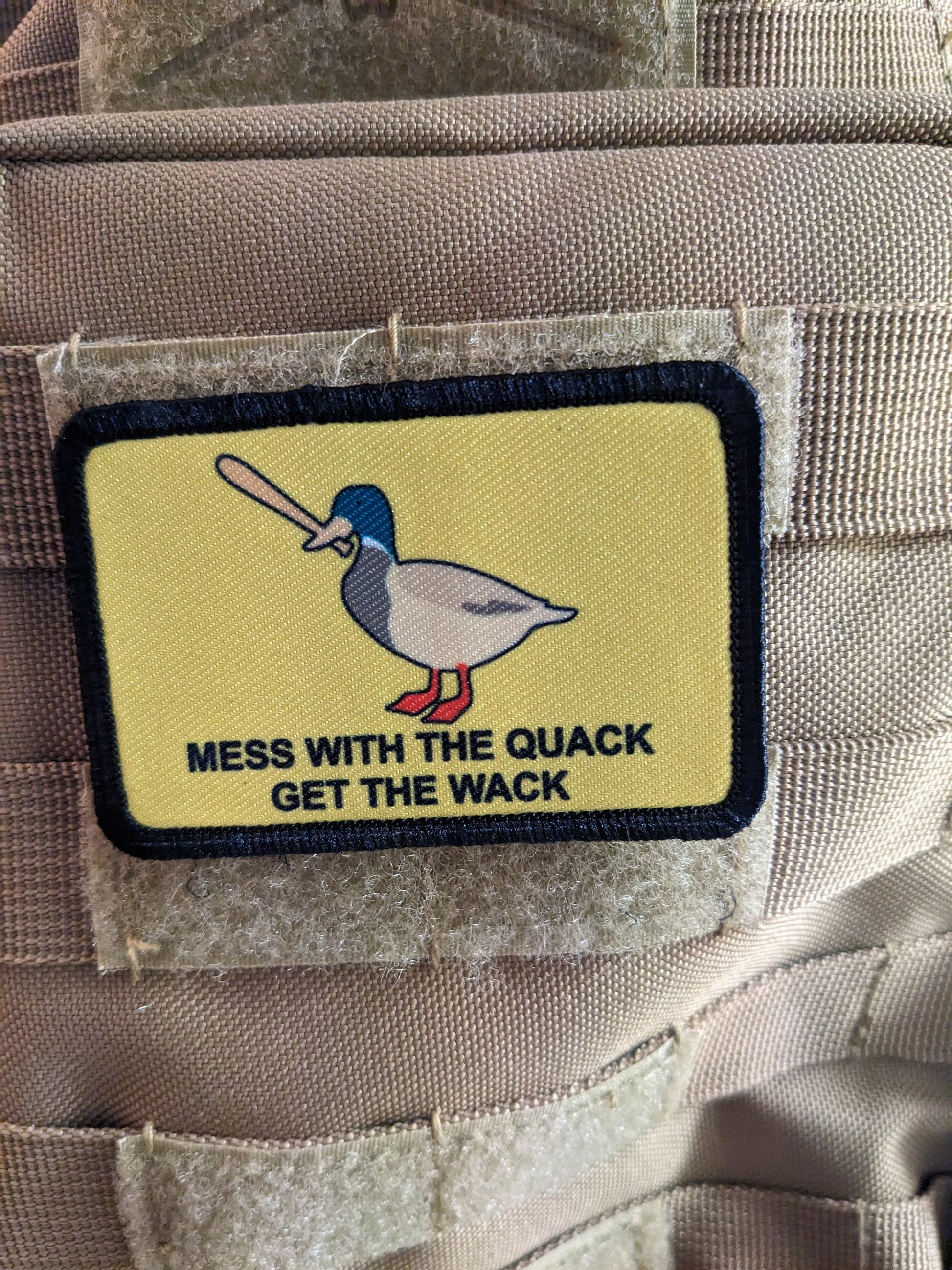 Mess with the quack get the wack Gadsden flag duck meme 2"x3" removable morale patch with hook and loop backing