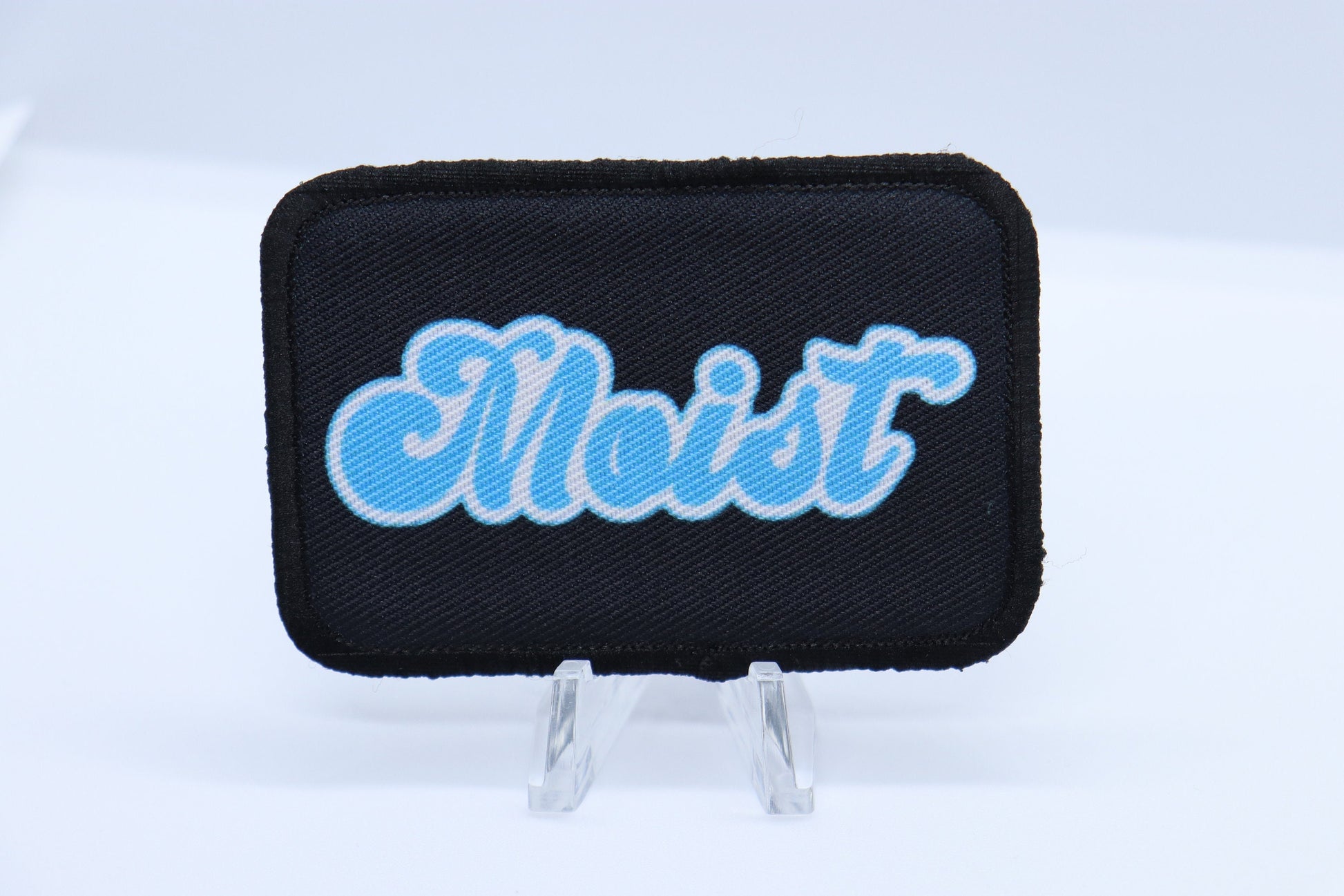 moist just because someone you know hates this word removable patch 2"x3" morale patch with hook and loop backing