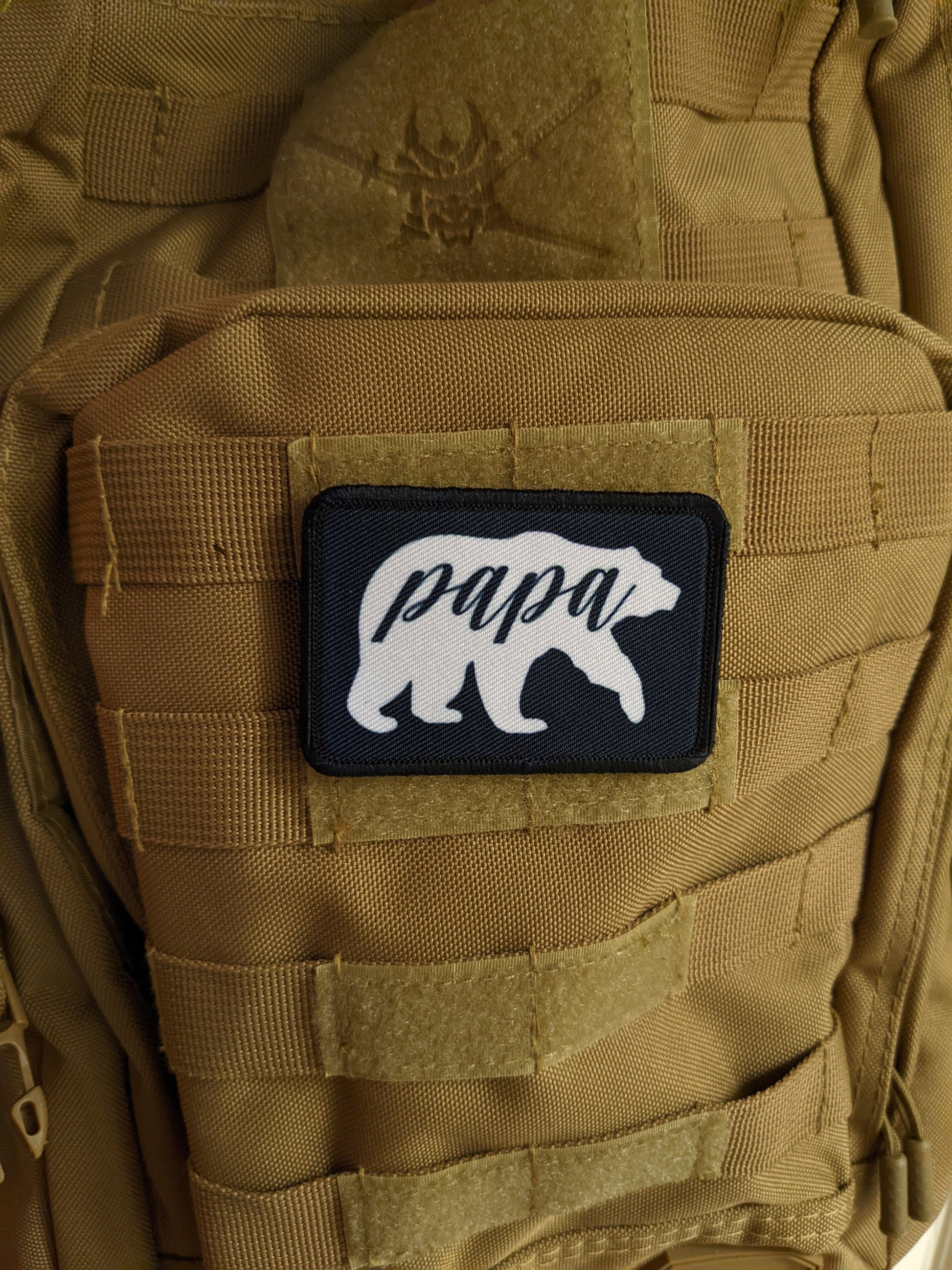 Papa Bear boy dad girl dad 2"x3" white morale patch with hook and loop backing
