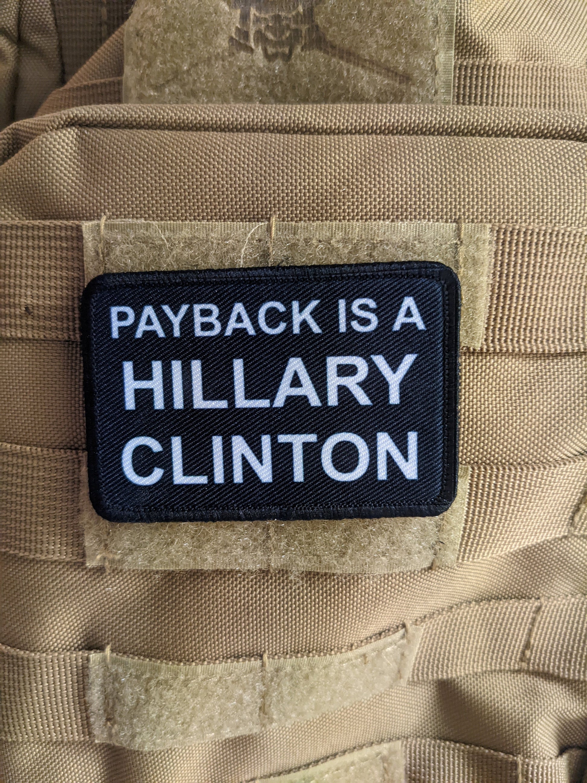 Payback is a Hillary Clinton (bitch) 2"x3" morale patch with hook and loop backing