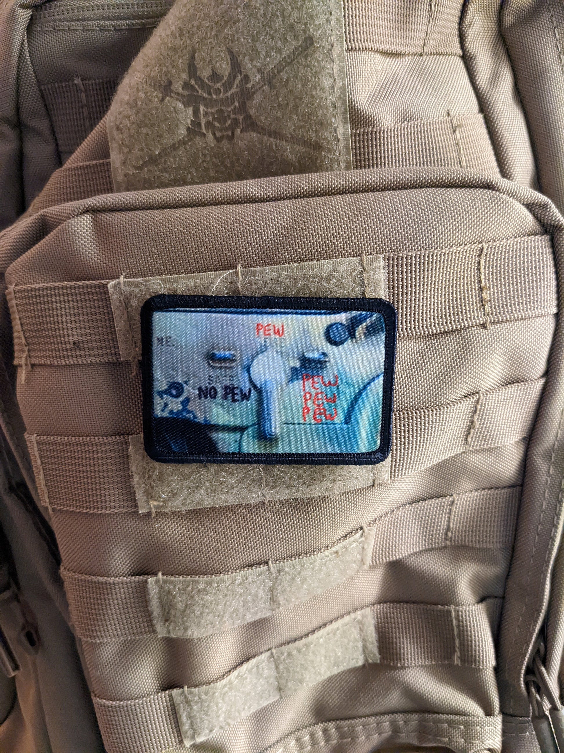 Pew pew pew safety m4 meme 2"x3" morale patch with hook and loop backing