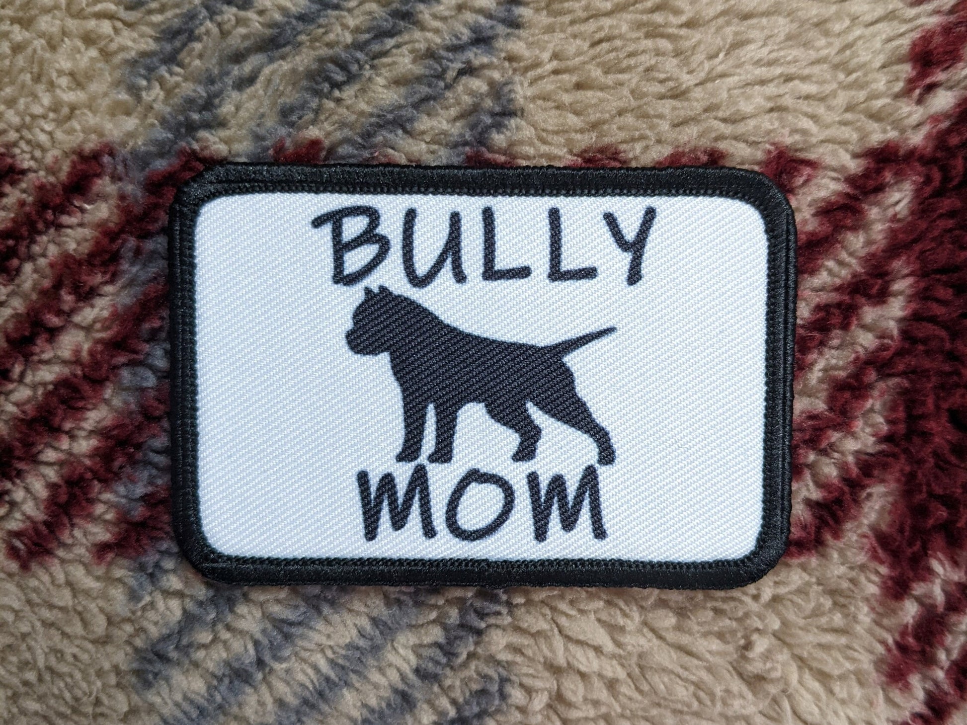 pit bull bully mom 2"x3" white morale patch with hook and loop backing