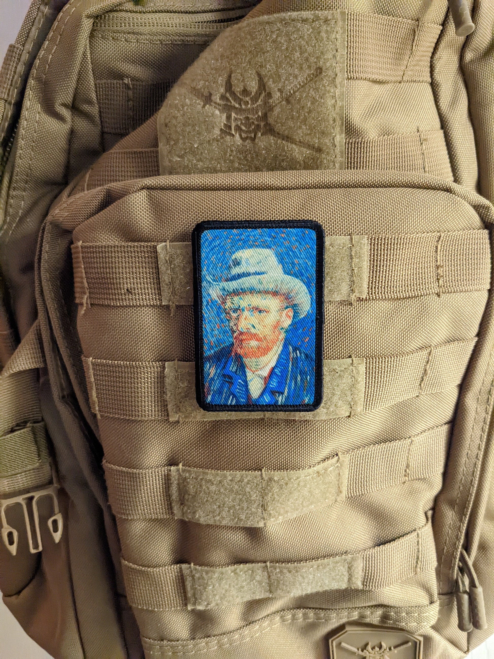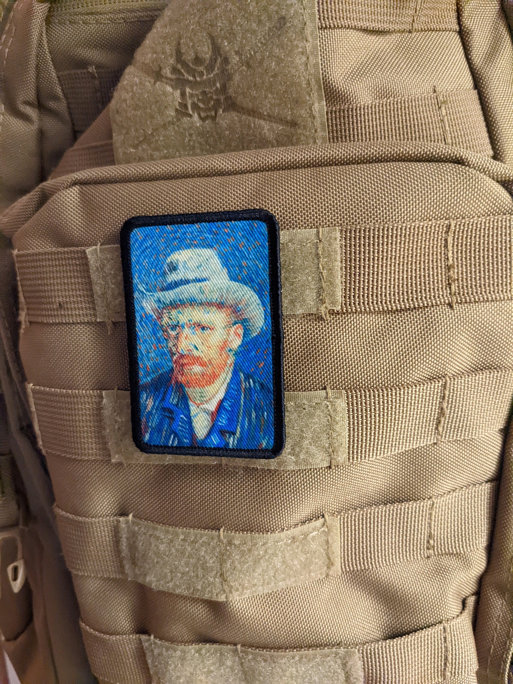 Self portrait gray felt hat Vincent van Gogh 2"x3" morale patch with hook and loop backing