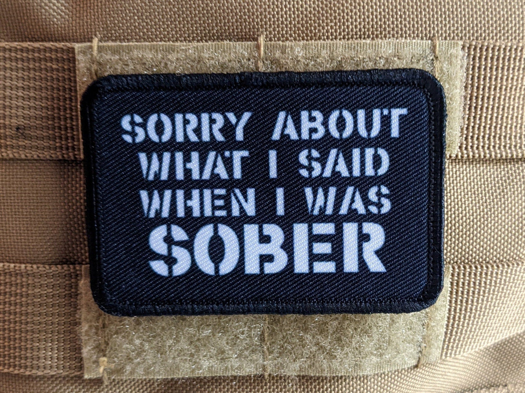 Sorry about what I said when I was sober funny 2"x3" morale patch with hook and loop backing green background