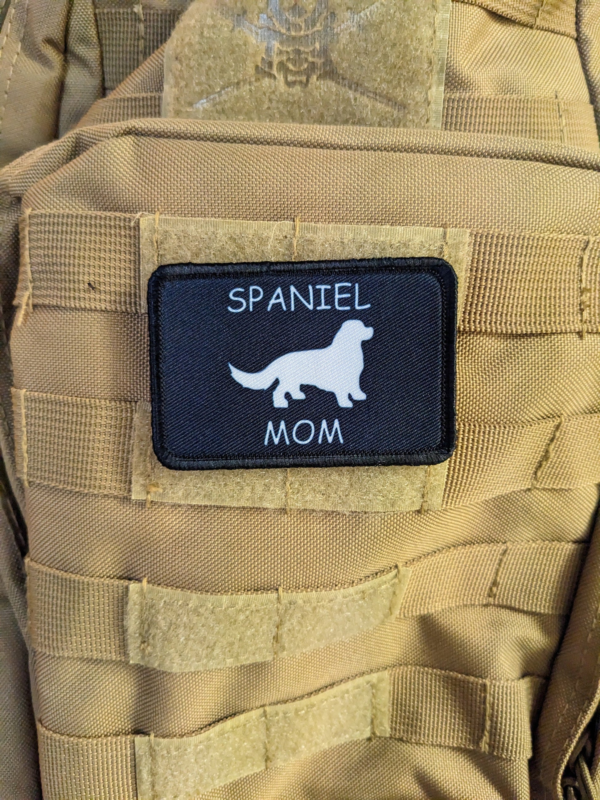 spaniel mom fur baby cute pets meme 2"x3" morale patch with hook and loop backing