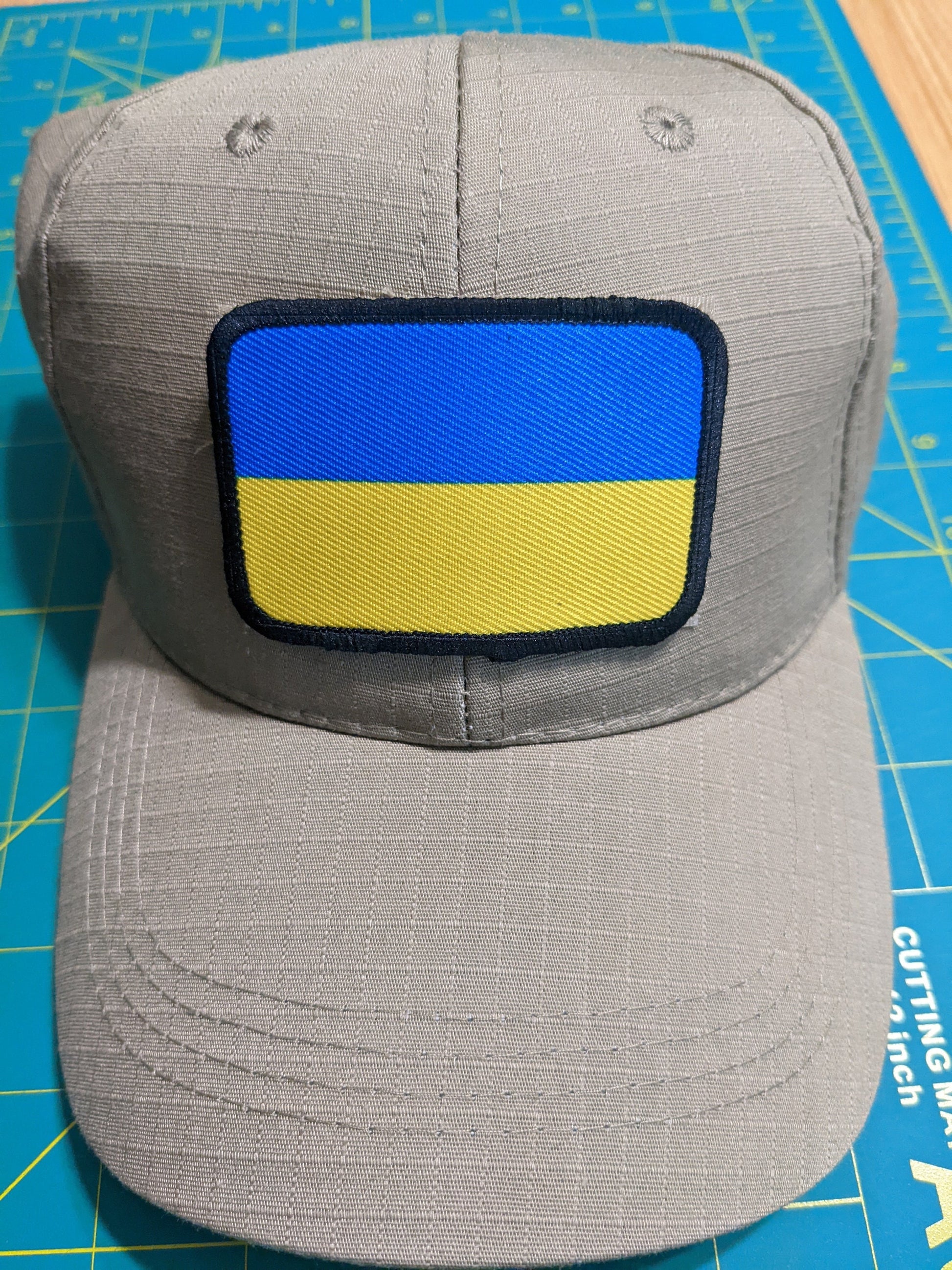 Ukraine Flag stand with Ukraine 2"x3" morale patch with hook and loop backing