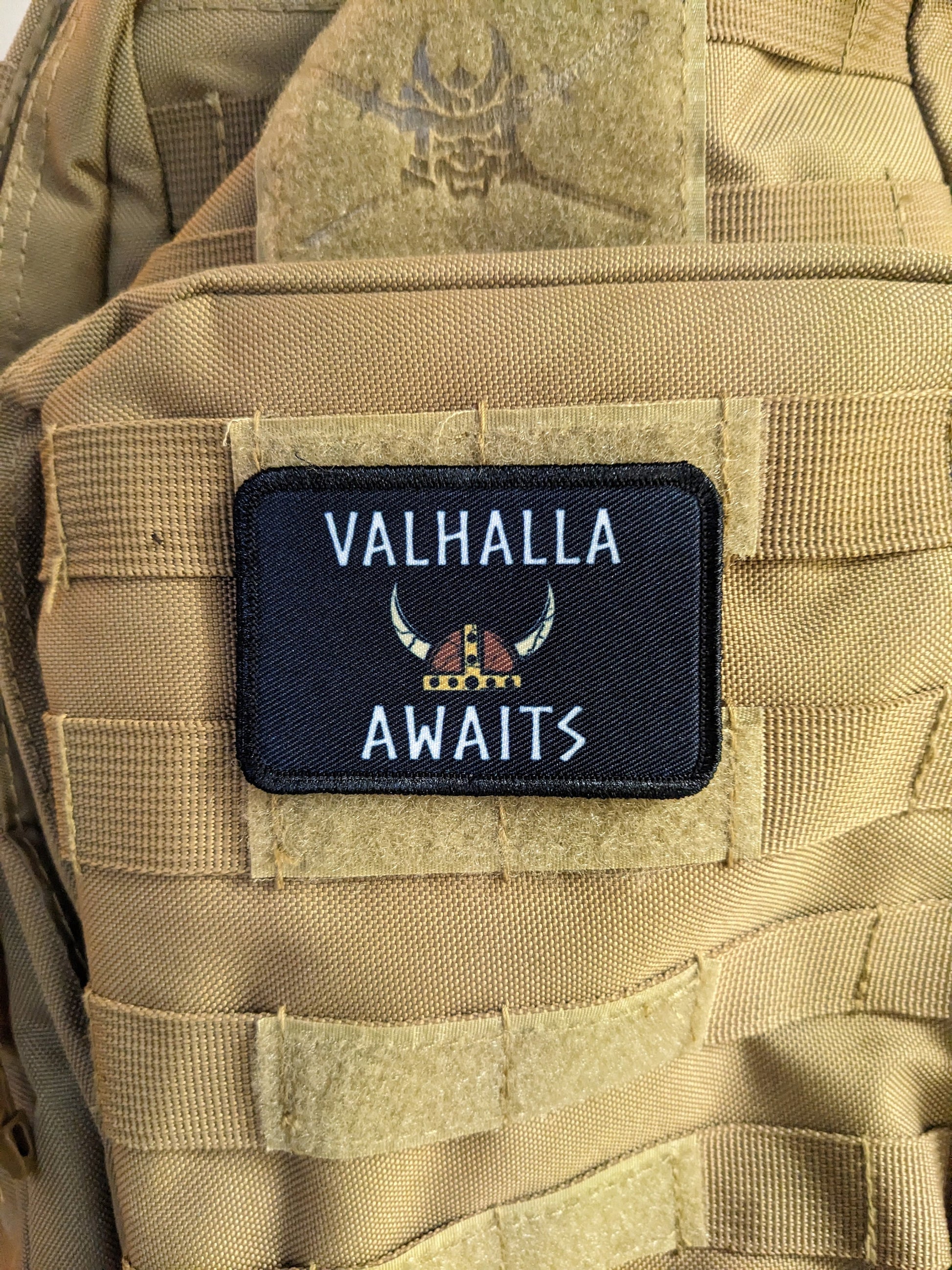 Valhalla awaits Viking Norse 2"x3" morale patch with hook and loop backing