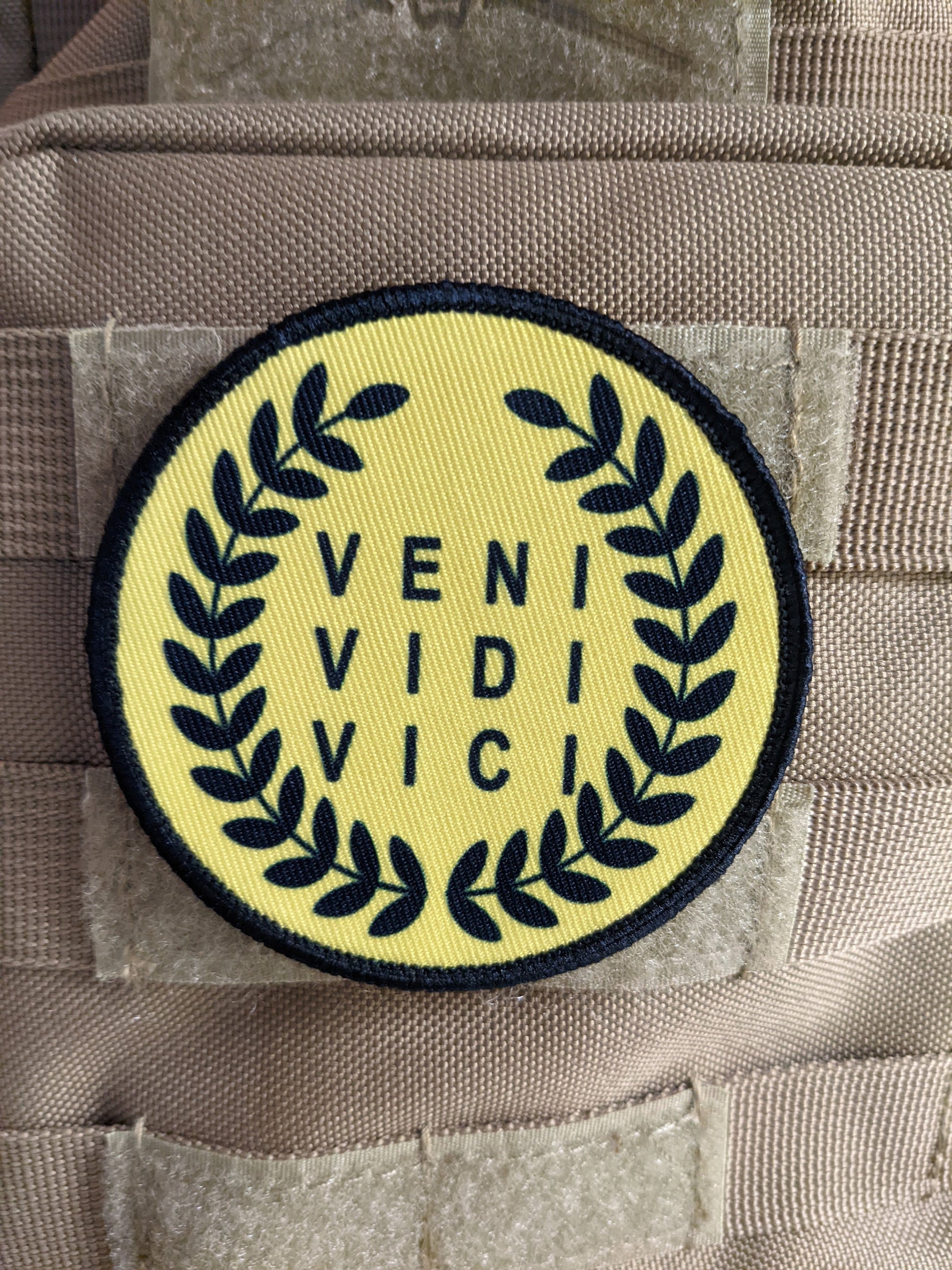 Veni Vidi Vici I came I saw I conquered 3" circle morale patch with hook and loop backing
