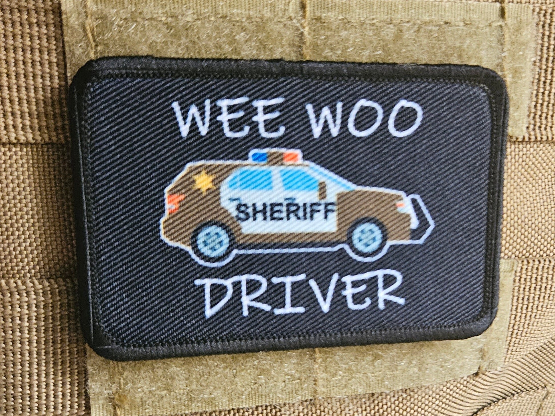 Wee woo driver sheriff SUV brown version driver funny 2"x3" removable morale patch with hook and loop backing