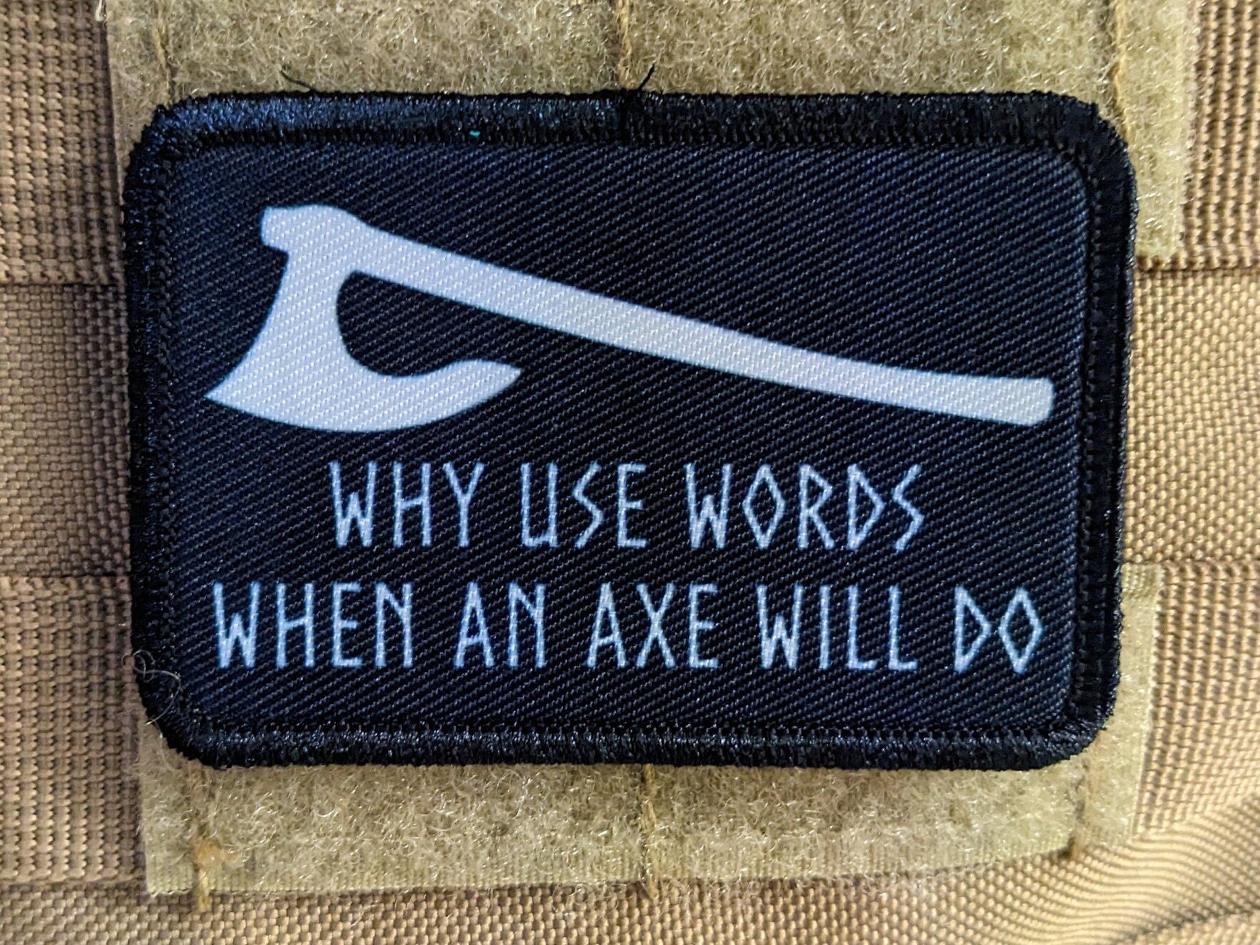Why use words when an axe will do Viking Norse 2"x3" morale patch with hook and loop backing