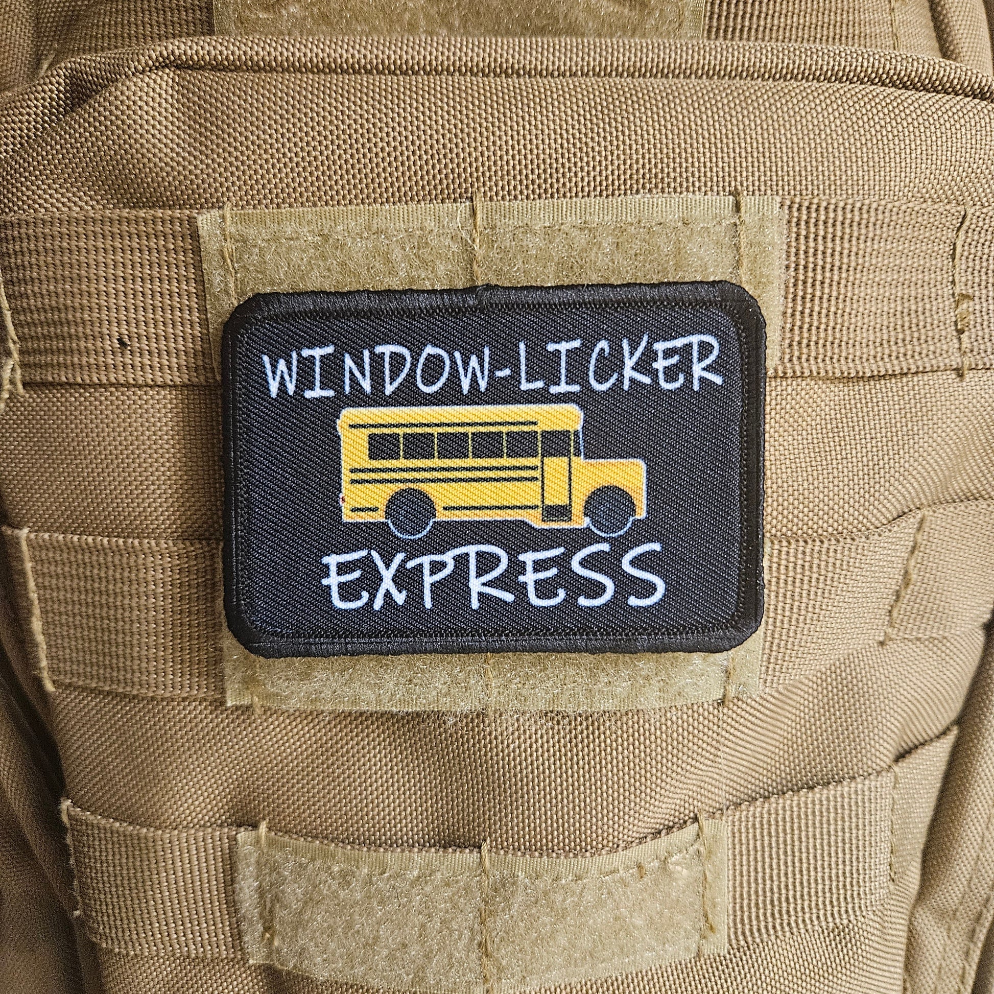 Window-licker express school bus driver funny 2"x3" removable morale patch with hook and loop backing