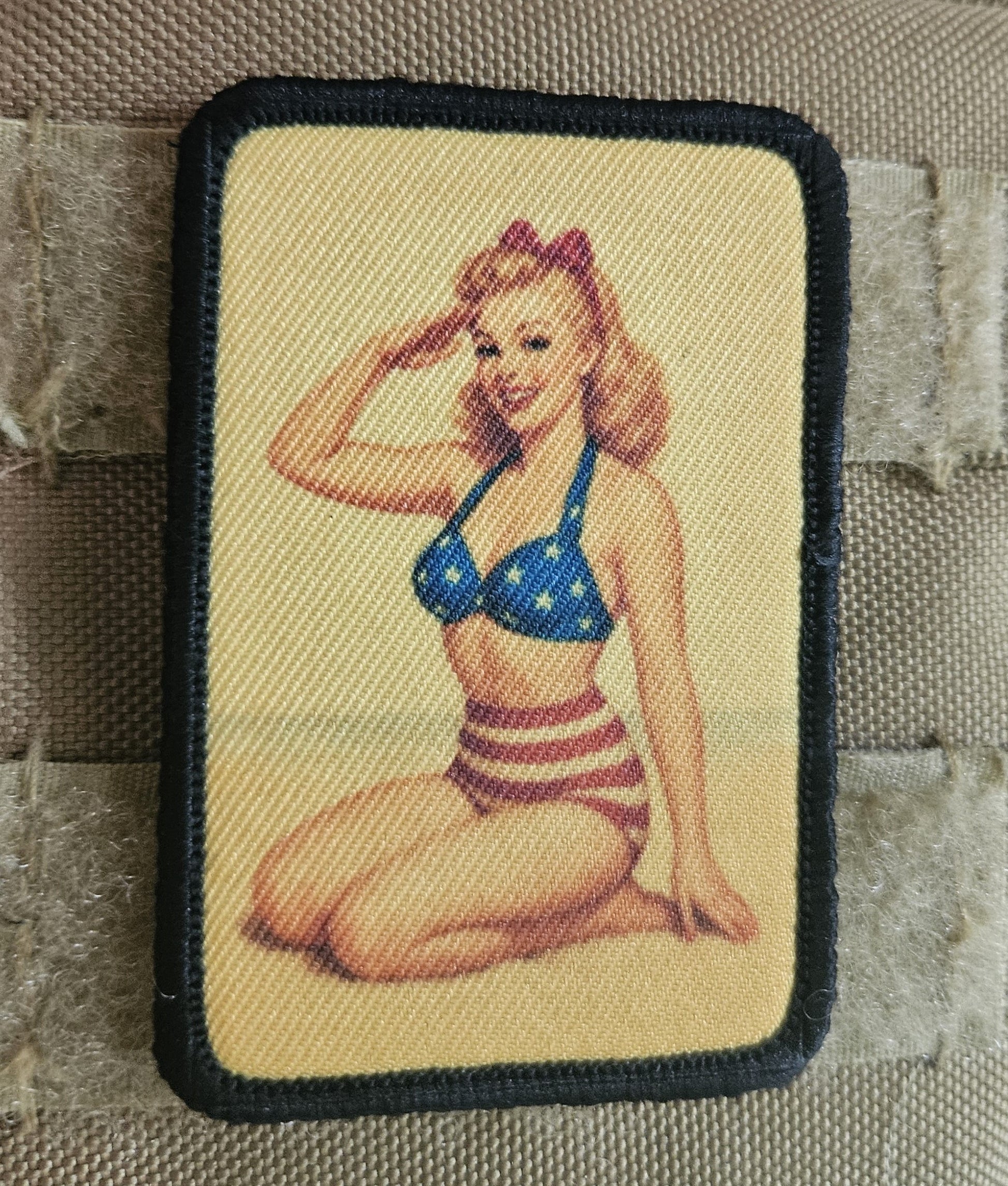 World War 2 wwii blonde pinup girl 2"x3" removable morale patch with hook and loop backing (Copy)