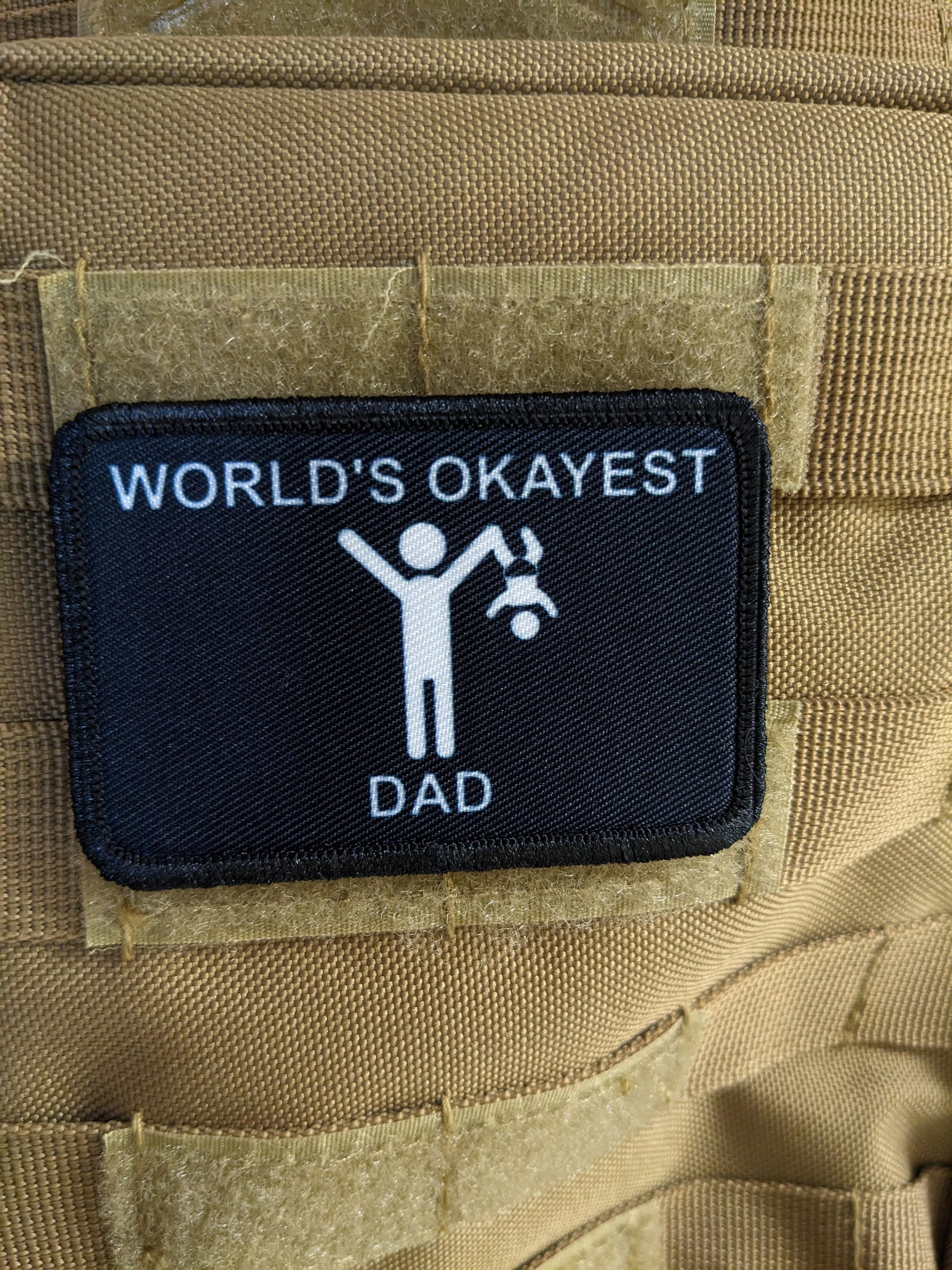 World's Okayest dad funny meme 2"x3" morale patch with hook and loop backing father's day edc