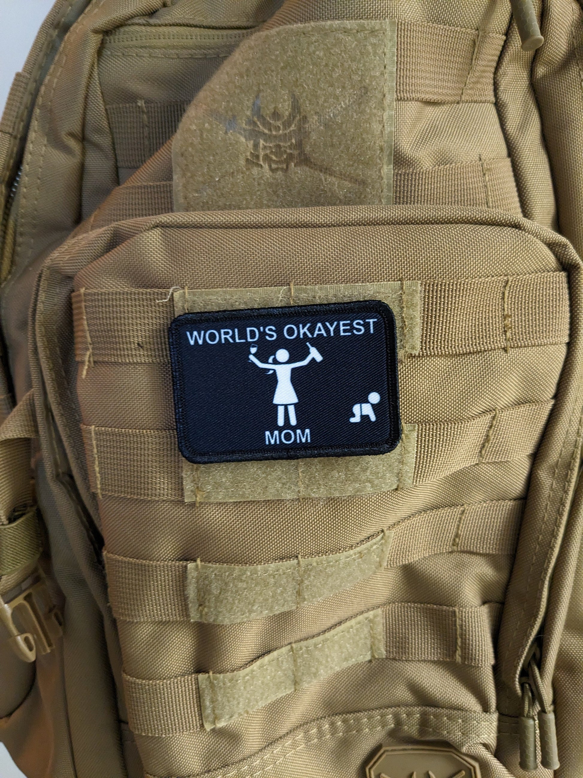 World's Okayest mom funny meme 2"x3" morale patch with hook and loop backing mother's day