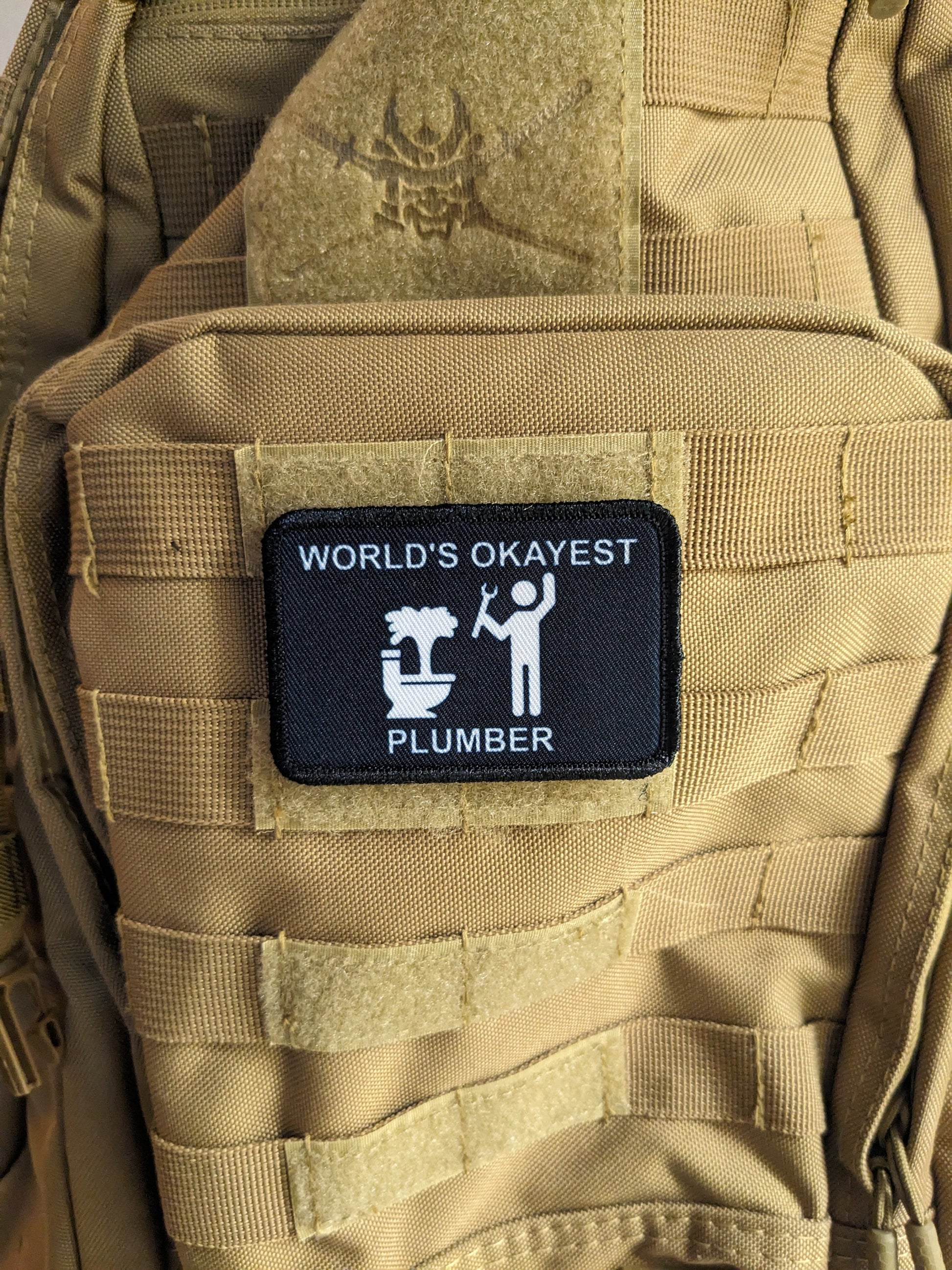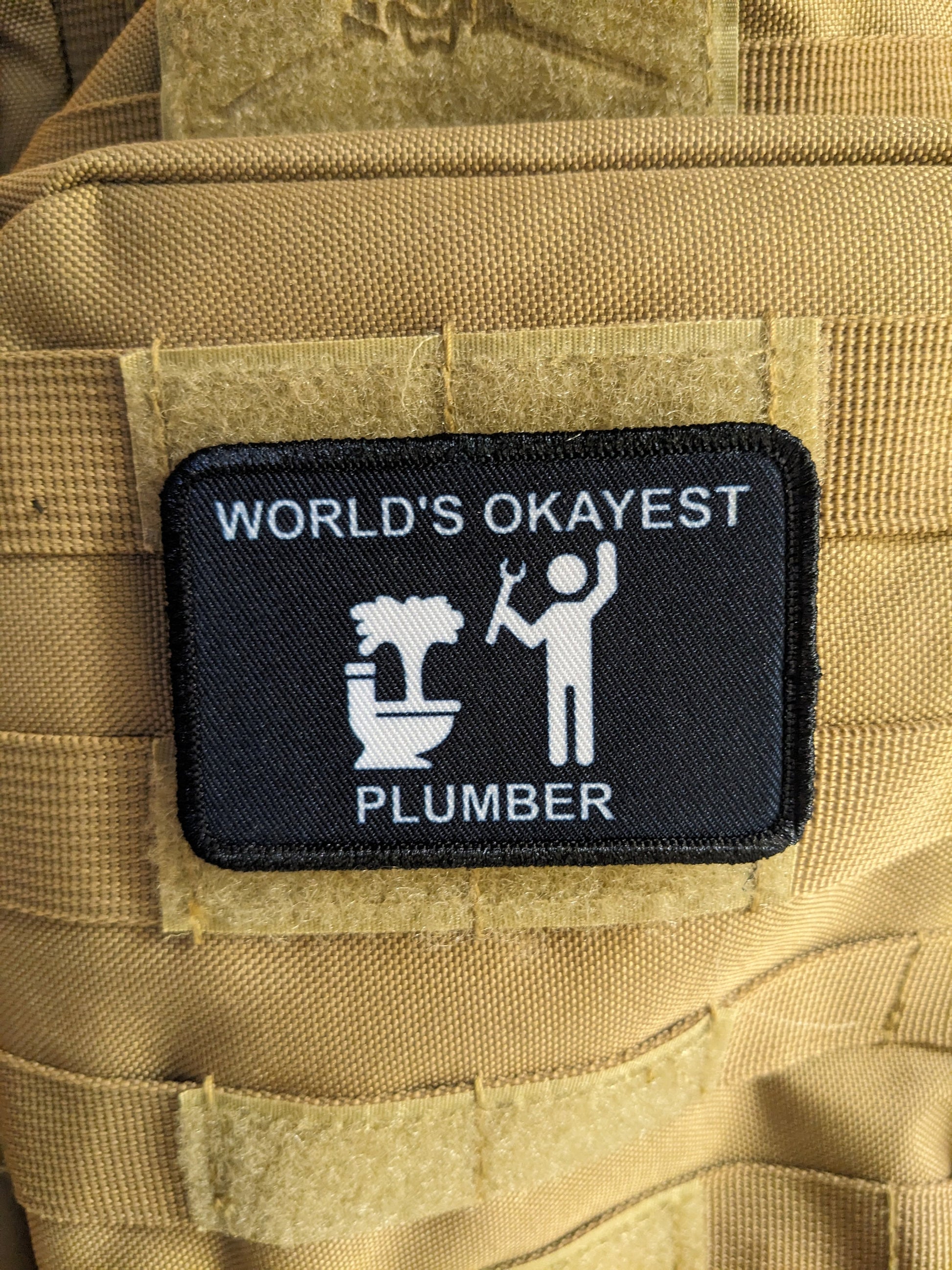 World's okayest plumber blue collar welding 2"x3" morale patch with hook and loop backing