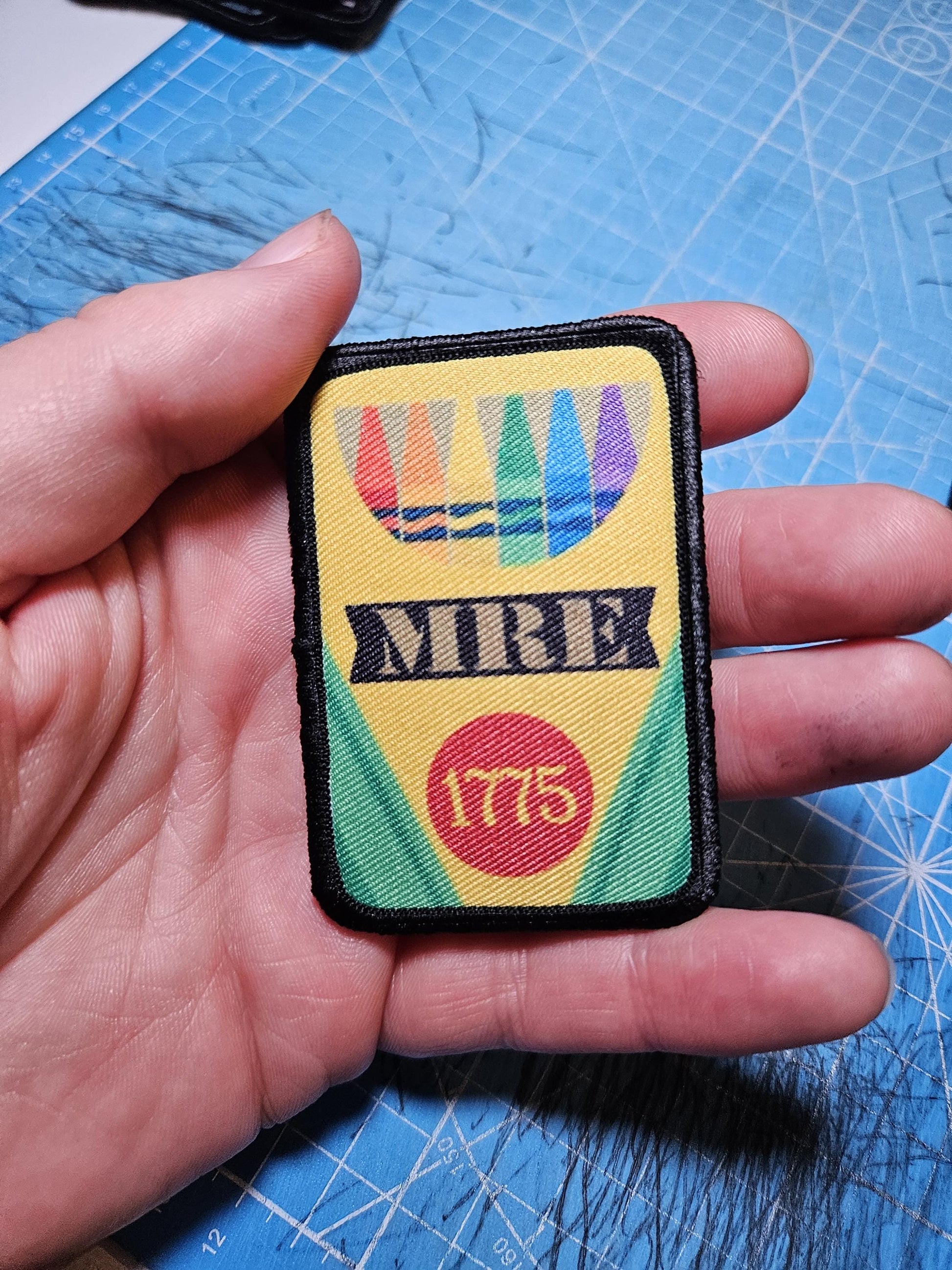 each patch measured 2" x 3" and has a hook and loop back with a matching hook and loop pad that can be sewn onto clothing or bags to creates a space for your new patch.
